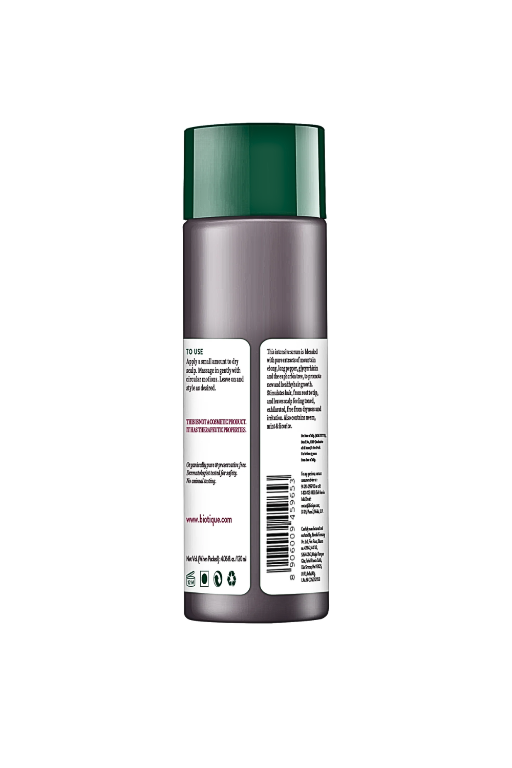 MOUNTAIN EBONY is a precious, magnificently flowering, hardwood tree that is prized for its stimulating and healing properties. This intensive serum is blended with pure extracts of mountain ebony, long pepper, glycyrrhizin, and the euphorbia tree, to promote new and healthy hair growth. Stimulates hair, from root to tip, and leaves scalp feeling toned, exhilarated, and free from dryness and irritation. Also contains neem, mint & licorice. Biotique Mountain Ebony Vitalizing Serum for Falling Hair Intensive Hair Growth Treatment is infused with the goodness of Mountain Ebony, Neem, and Mulethi. This elixir is designed to let your hair speak for itself, with just a few drops unlocking its stimulating and healing properties. Our ayurvedic serum is enriched with the power of Mountain Ebony, a beautiful flowering hardwood tree that helps to promote hair growth. Combined with the nourishing properties of Neem, which relieves itchy scalp and eliminates dandruff and Mulethi soothes the scalp and prevents scabs and dandruff. It promotes healthy hair growth and stimulates your hair from root to tip, ensuring a fuller and thicker appearance. Your scalp will feel invigorated and refreshed made with 100% natural botanical extracts and free from harmful chemicals. This Biotique hair growth serum is dermatologically tested and suitable for all skin types. To use this hair growth serum just apply a small amount to your dry scalp and gently massage in circular motions. Leave it on and style your hair as desired. Unlock the secrets of Mountain Ebony and indulge your hair with the ultimate nourishment it deserves. Try our revitalizing serum today and let your hair shine with confidence.