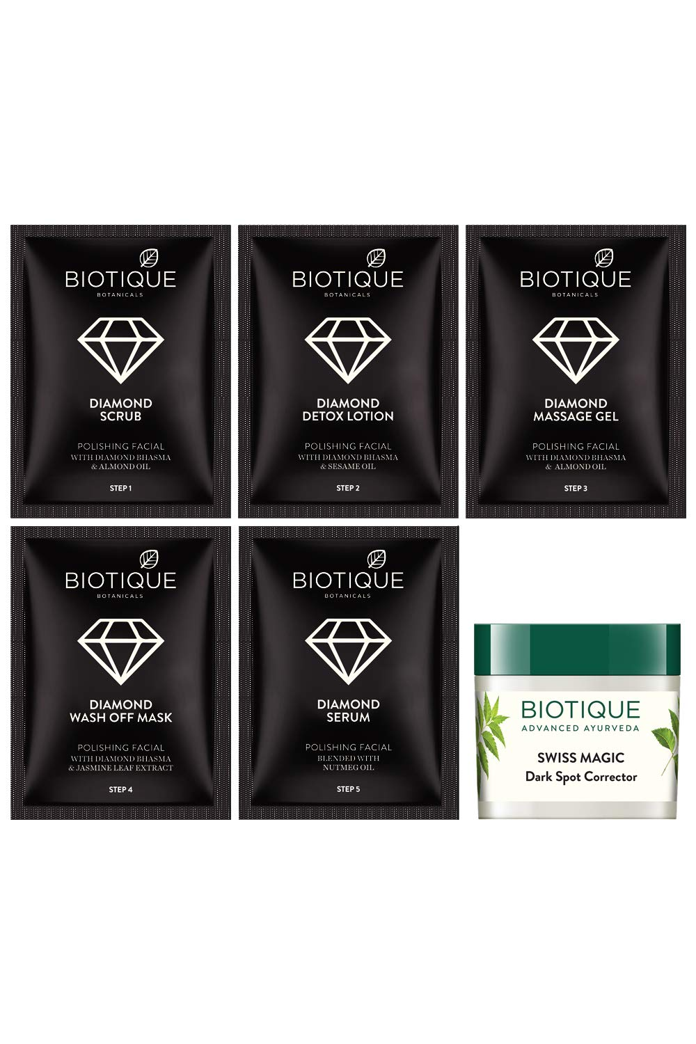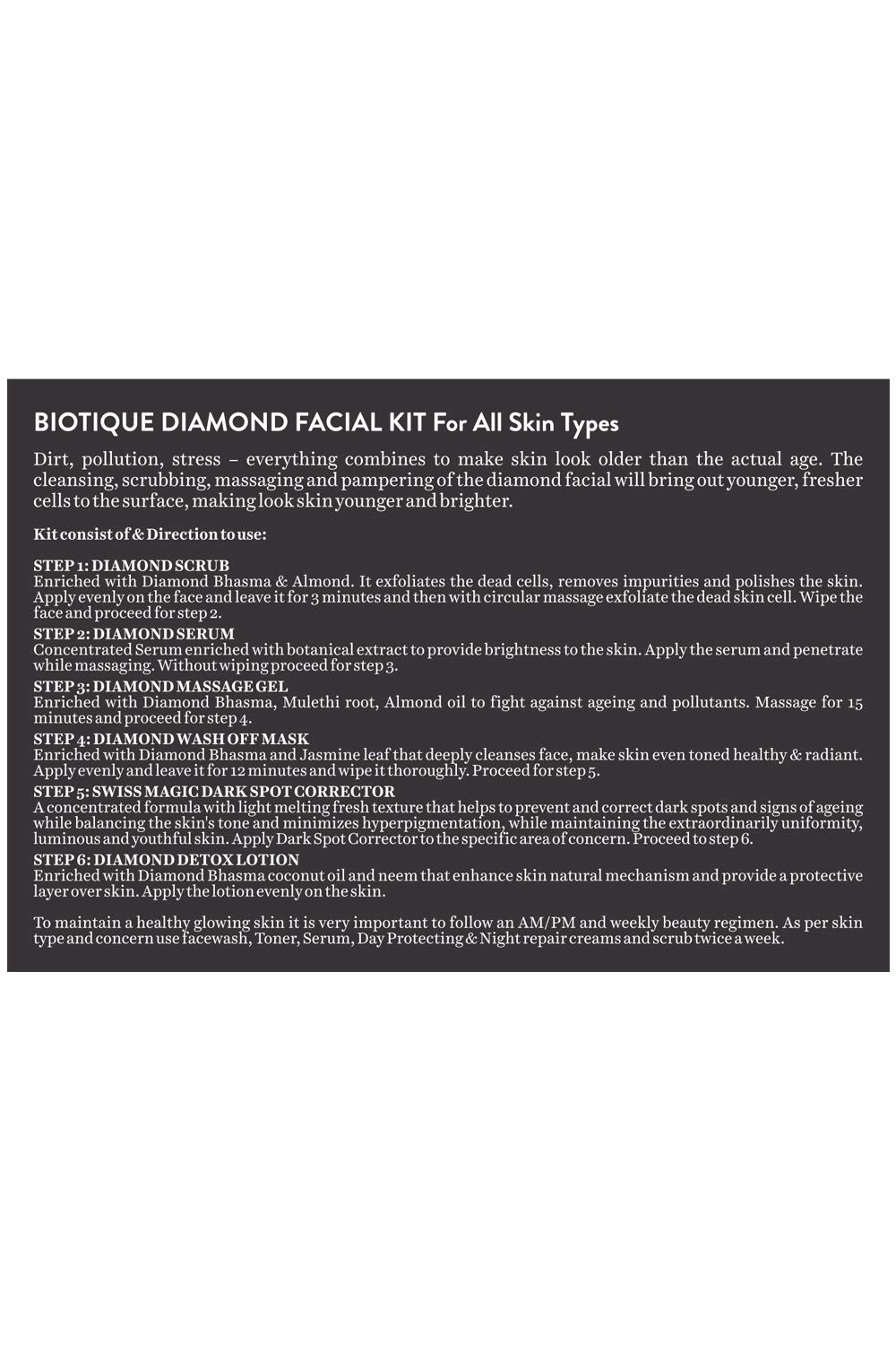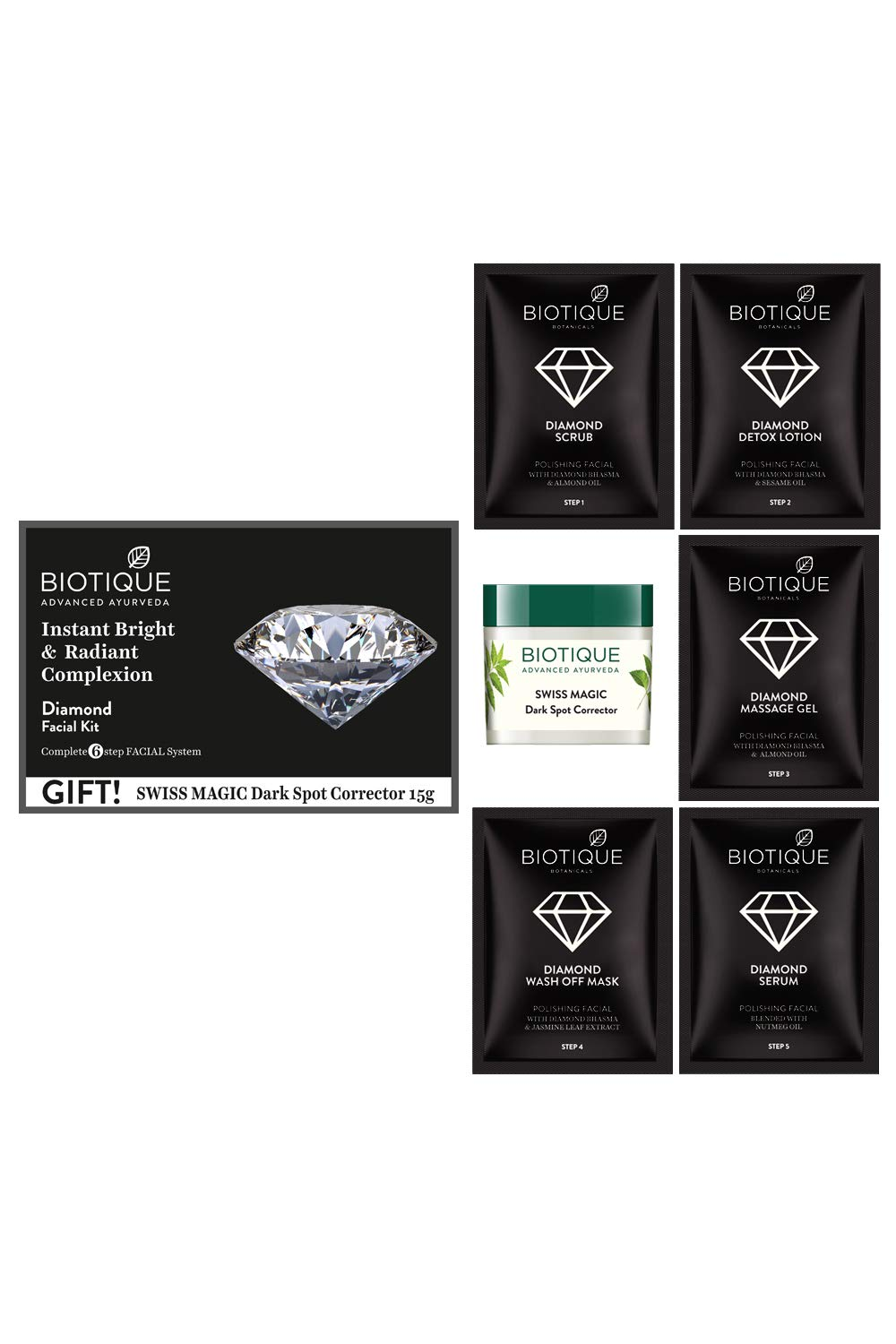 Biotique DIAMOND Instant Bright & Radiant Complexion Facial Kit, (5x10g+15g)