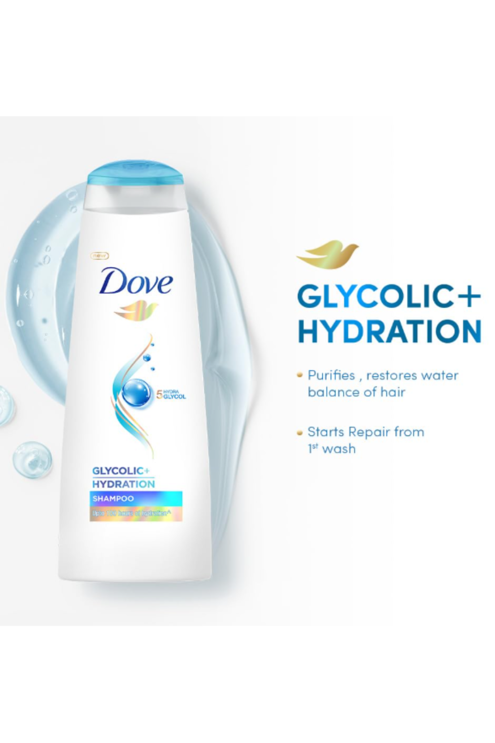Is your hair increasingly becoming prone to dryness, roughness to the extent that it tends to become stiff and doesn’t move naturally. The dryness in your hair is your hair asking for hydration. Dry, rough hair is indication of beginning of damage. Your hair is experiencing the onset of damage and loss of water balance is one of the possible causes. Dove understands this and hence brings to you an effective solution that helps restore the water balance, leaving hair hydrated for upto 100 hours^ with regular use. Introducing Dove Glycolic + Hydration shampoo - enriched with 5% Hydra-Glycol~ and Bio-Protein care that helps in repairing hair and restoring hydration. For the first time in India, Dove has introduced 5% Hydra-Glycol~ technology with the new Dove Glycolic + Hydration range. 5% Hydra-Glycol~ includes hydrating glycerin, sodium gluconate, glycolic acid, propylene glycol - together these effectively hydrate your dry hair. The Result - dry, stiff hair becomes hydrated and fluid as if flowing like water, moving effortlessly as you go about your day. Disclaimer: ^Based on lab tests with Dove Glycolic+ Hydration shampoo versus non-conditioning shampoo with regular use ~5% Hydra-Glycol is a combination of glycerin, sodium gluconate, glycolic acid, propylene glycol, citric acid, dimethiconol and sodium benzoate.