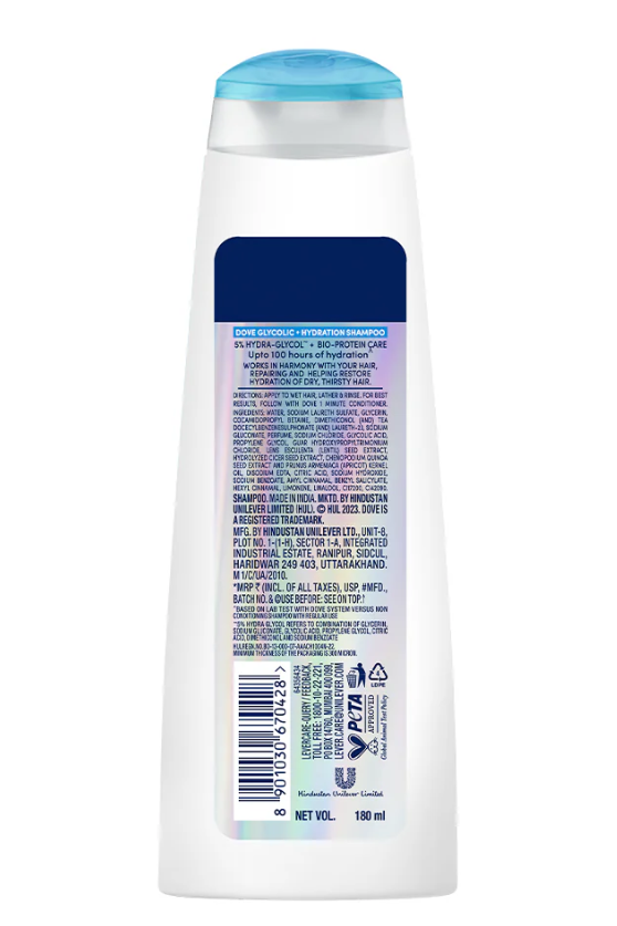 Dove Glycolic Hydration Shampoo, 180ml