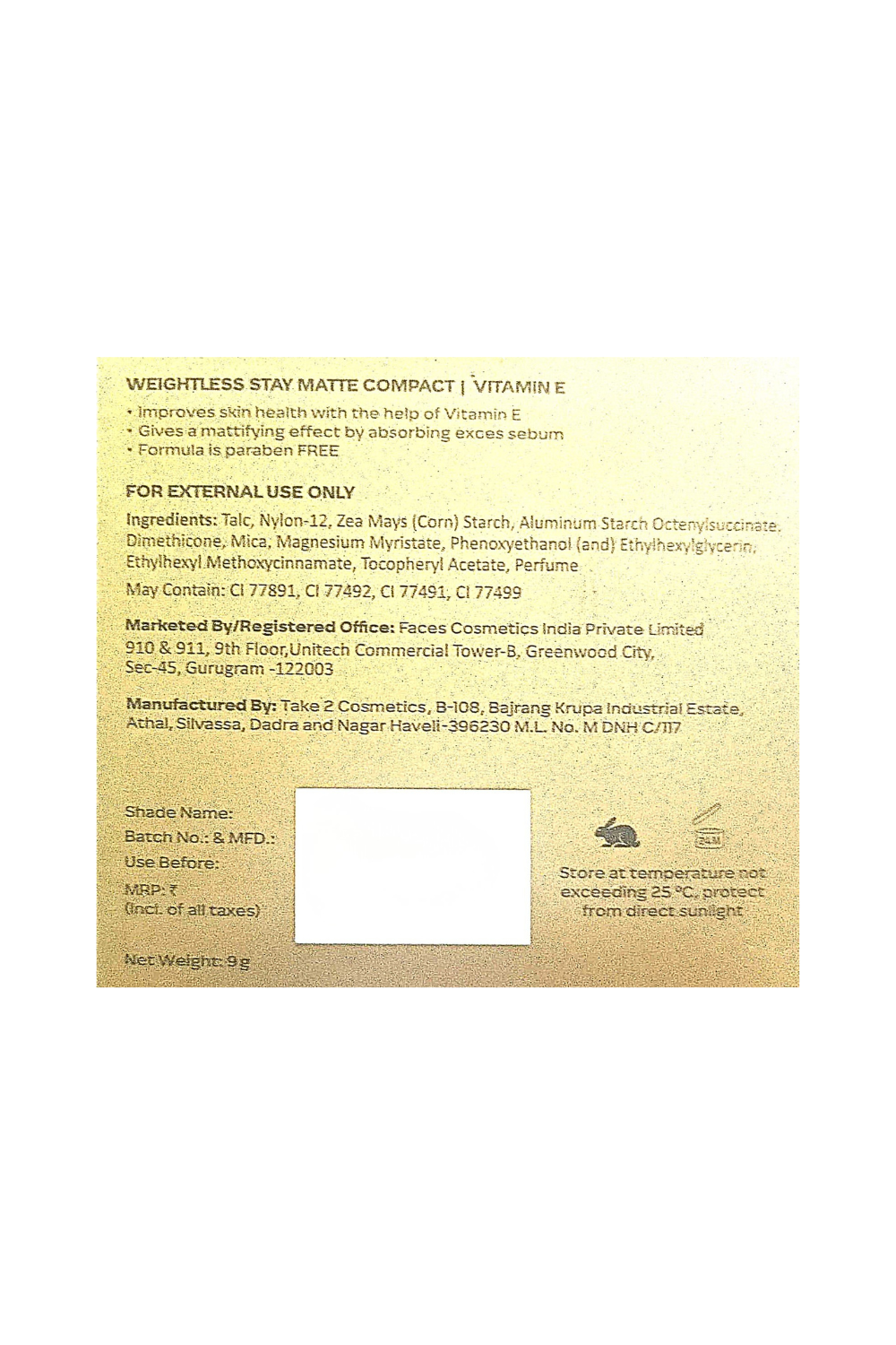 - Faces Canada Weightless Stay Matte Compact With SPF 20, Vitamin E & Shea Butter, 9gm
