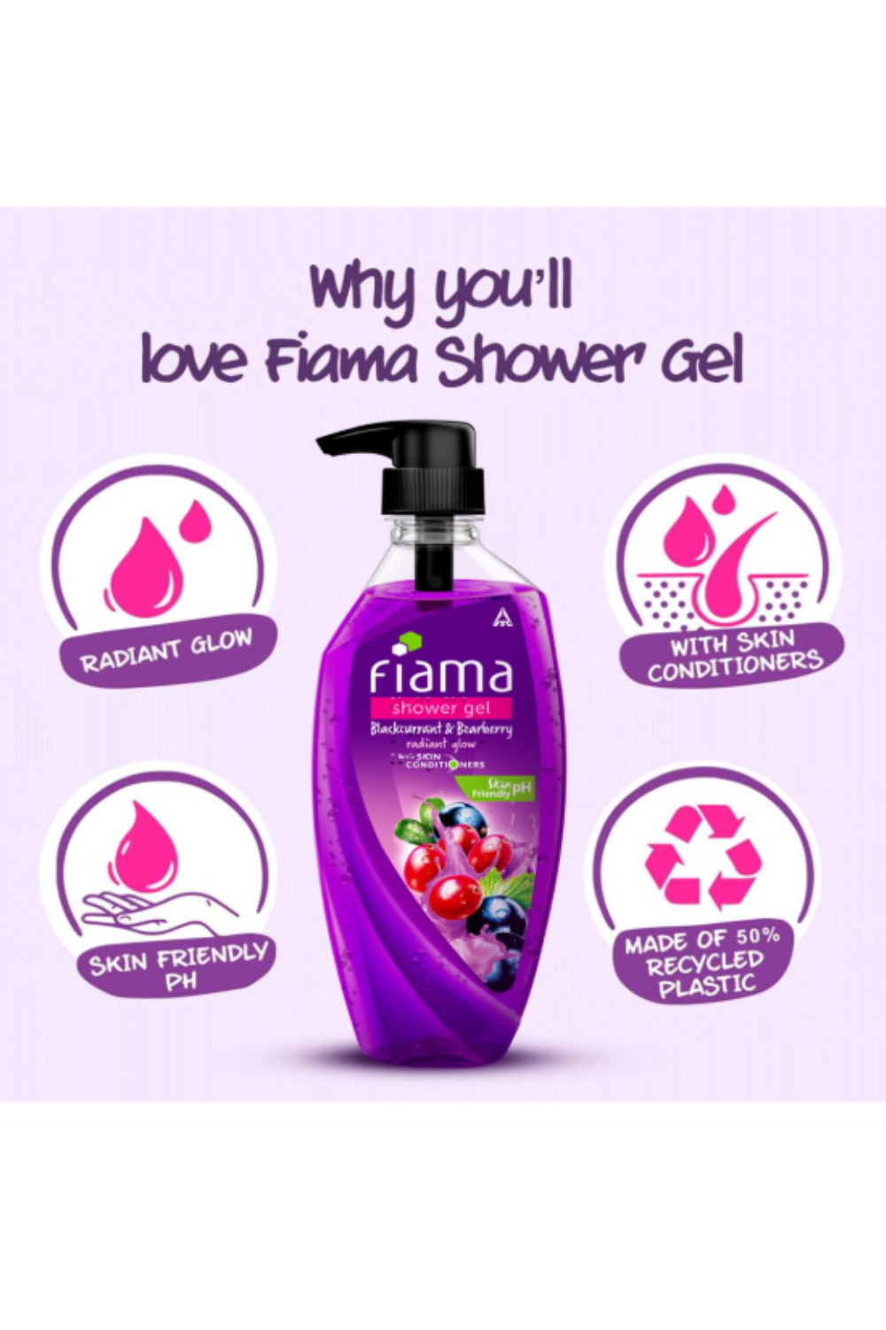Wash away the troubles of your day, with the foamy, fresh, and fun Fiama Body Wash. And while you enjoy your Fiama bath, let its skin-conditioners work their magic to give your skin a radiant glow.This Blackcurrant and Bearberry shower gel has an indulgent fragrance that transforms a normal shower into a spa-like experience. It is filled with goodness of natural ingredients, which helps your skin glow. So get ready to make every bath, a highlight of your day.