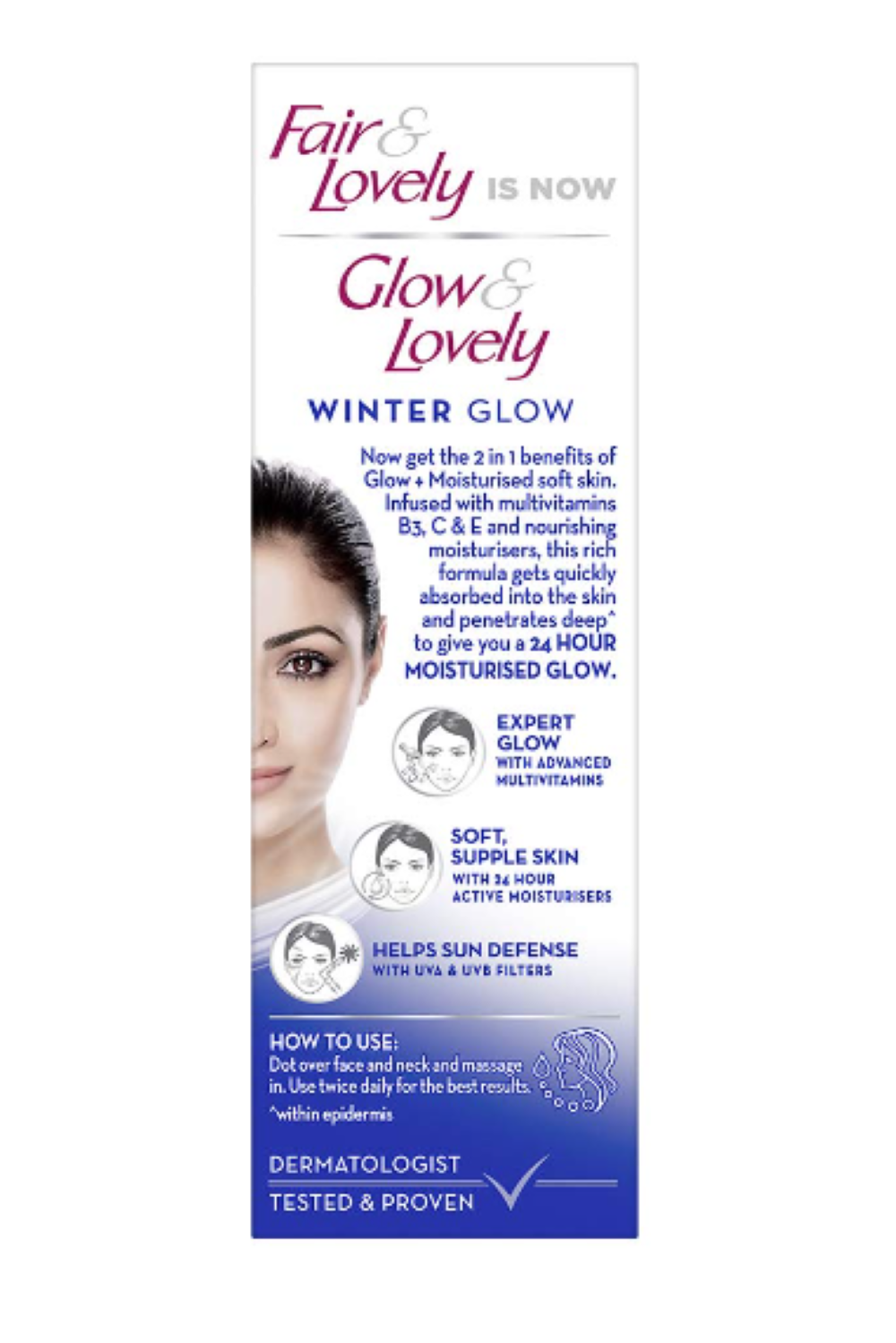 Are you worried about dry and rough skin during winters when your skin looks oily because of using heavy cold creams and antiseptic creams? Worry no more as all these problems will be taken care of by the Glow & Lovely (formerly known as Fair & Lovely) Winter Glow Face Moisturiser, this light moisturiser gives 2-in-1 benefit of Glow + Moisturised soft skin, with a non-oily matte finish. It is infused with multivitamins, B3, C & E and nourishing moisturisers, this rich formula gets quickly absorbed into the skin and penetrates deep^ within to give you a 24 Hours Moisturised, Matte Glow. In winters, we combat dryness with oily winter creams that make our skin dull & oily & take away the glow we desire. Glow & Lovely Winter Glow contains advanced Multi Vitamins & Active Moisturizers that helps you flaunt your glowing moisturised skin even in winters. Advanced Multivitamins gives you a radiant glow & 24 hour Active Moisturizers keep your skin soft & supple even in winters while keeping the dryness away. It also has sun protection properties that protects your skin against the sun’s UVA/ UVB rays. Glow & Lovely Winter Glow cream gets easily absorbed into the skin and penetrates deep^ within your skin to give you a natural glow even in winters. It includes glycerine and mineral oil, which naturally replenishes and protect your skin from the harsh winters. For best results use regularly. Suitable for all skin types. Just dot the cream over face and neck and massage in. Use twice daily. For best results wash face with Glow & Lovely Instant Glow Facewash and then follow with Glow & Lovely Winter Glow Face Cream. Available in 9g, 25 g, 50g and 80g packs, so you ca use at home as well as carry along when you step out. So this winter, Glow & Lovely Winter Glow Cream for a non-oily Moisturised Glow. ^within epidermis