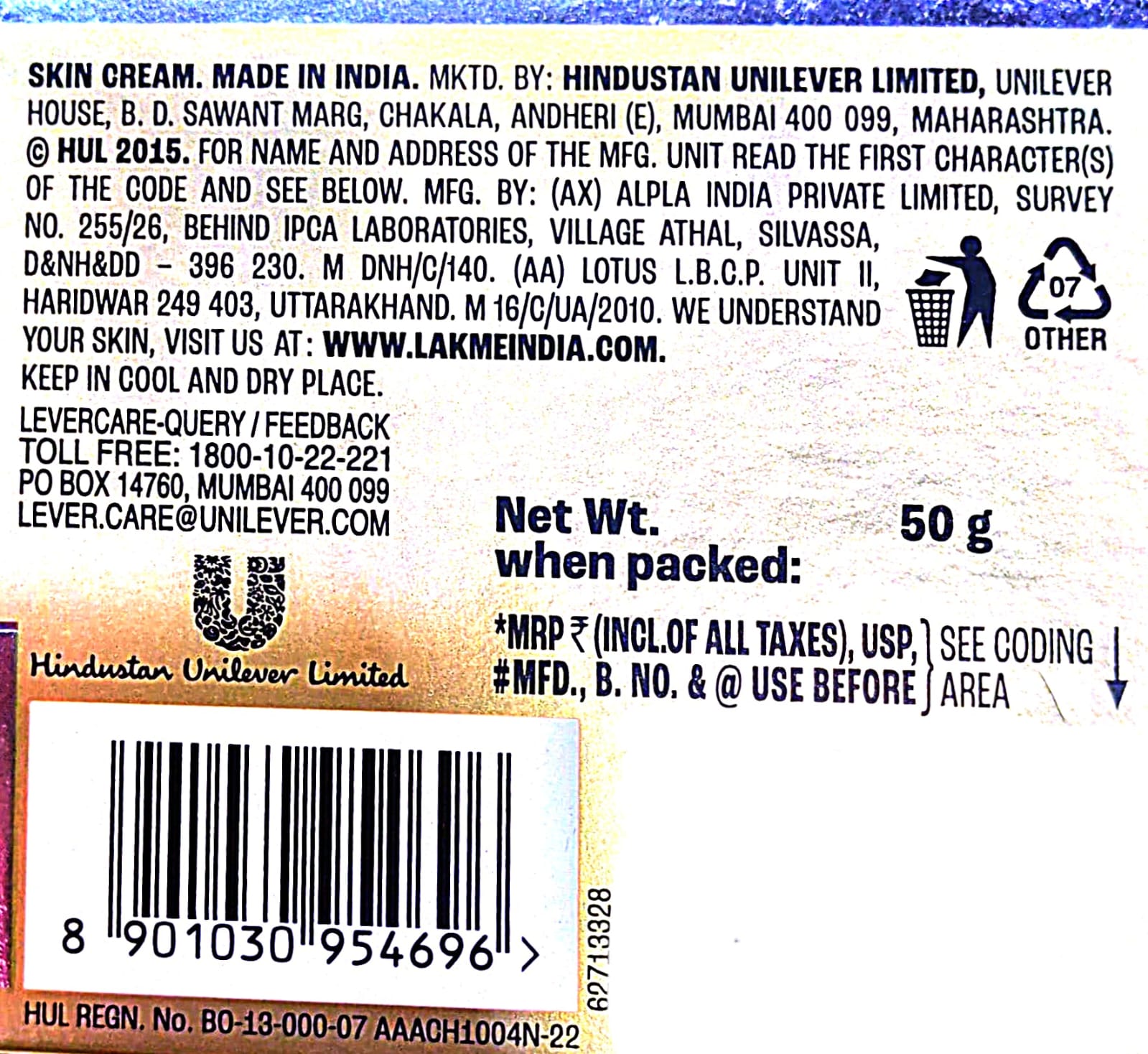 Manufactured By: : (AX) Alpla India Private Limited, Survey No.255/26, Behind IPCA Laboratories, Village Athal, Silvassa, D&NH&DD-396 230 (AA) L.B.C.P Unit II, Haridwar 249 403, Uttarkhand.