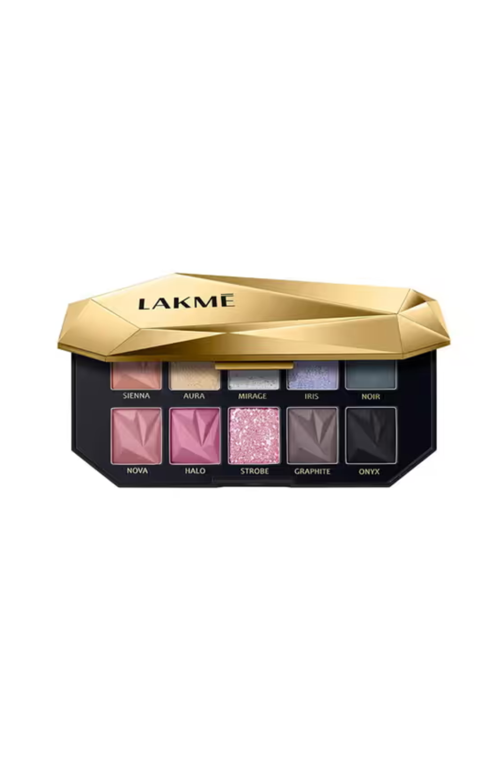 Shift your look into high dimension with the Lakme Be-Jewel Multichrome Eyeshadow Palette, 10 Shimmery Shades - Midnight Metals (12 g). With 10 expertly curated shades in matte, shimmer, marble, and foil finishes, this eyeshadow palette offers endless ways to define and dazzle. The high-performance pigments in the Lakme eye palette glide on effortlessly, blending seamlessly to create soft daytime looks or bold, statement eyes. Also, these crease-resistant eyeshadows stay fresh and luminous from morning to night.