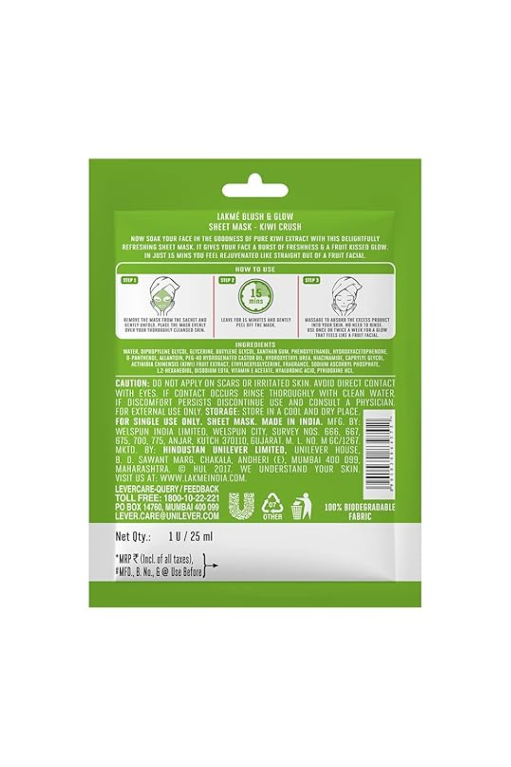 - Lakme Blush & Glow Kiwi Sheet Mask, 25ml