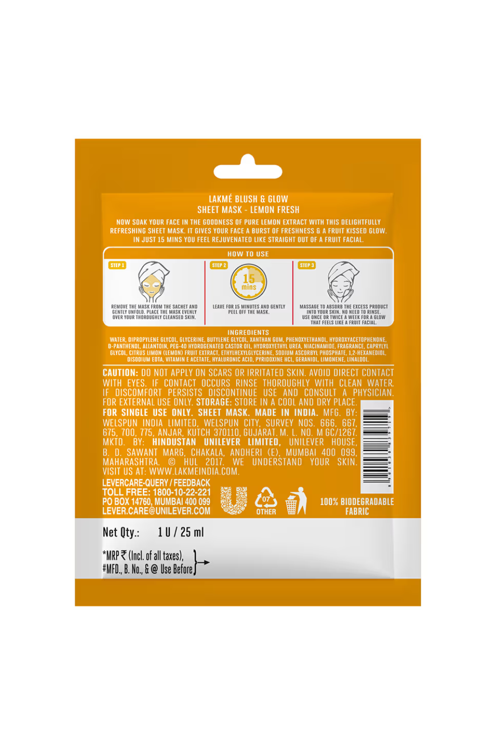 - Lakme Blush & Glow Lemon Sheet Mask, 25ml