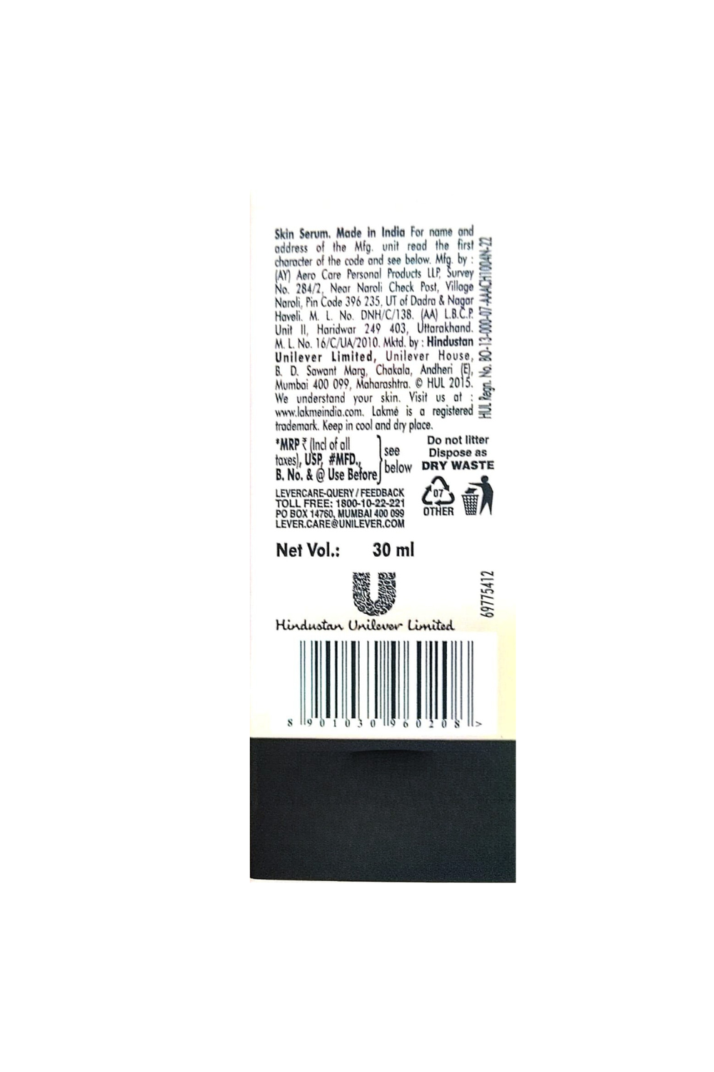 Manfactured By: L.B.C.P. Unit II, Haridwar 249 403, Uttrakhand, M.L. No. 16/C/UA/2010