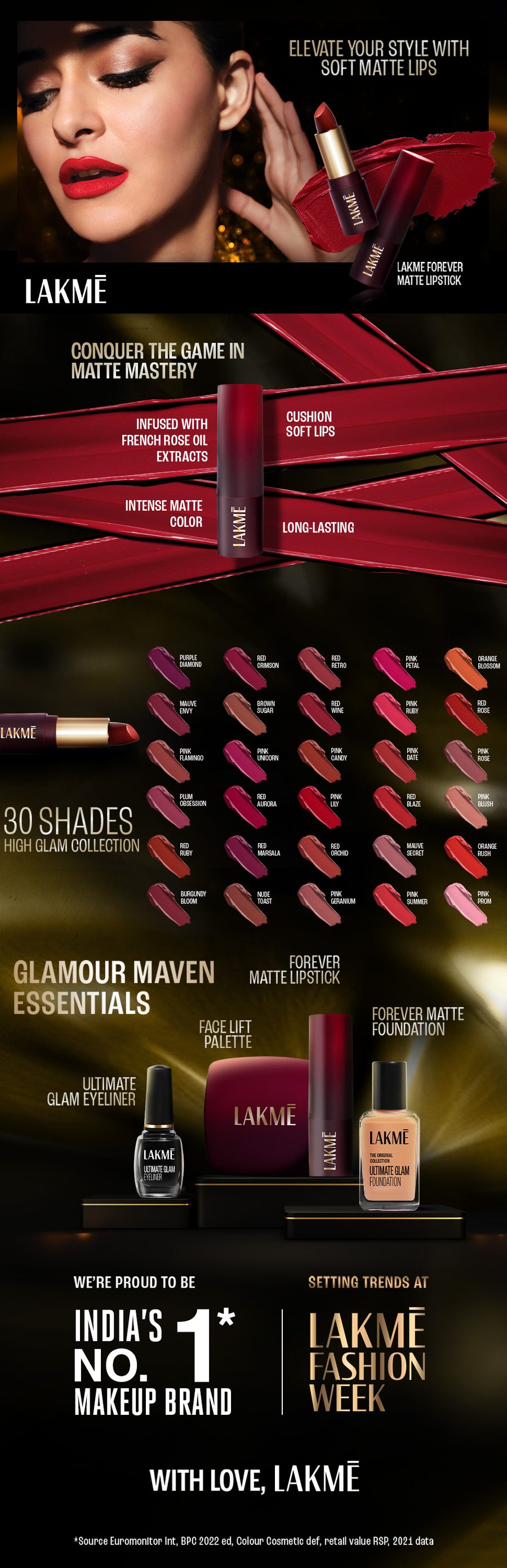 Lakme Ultimate Glam Satin Matte Lipstick, 4.3gm