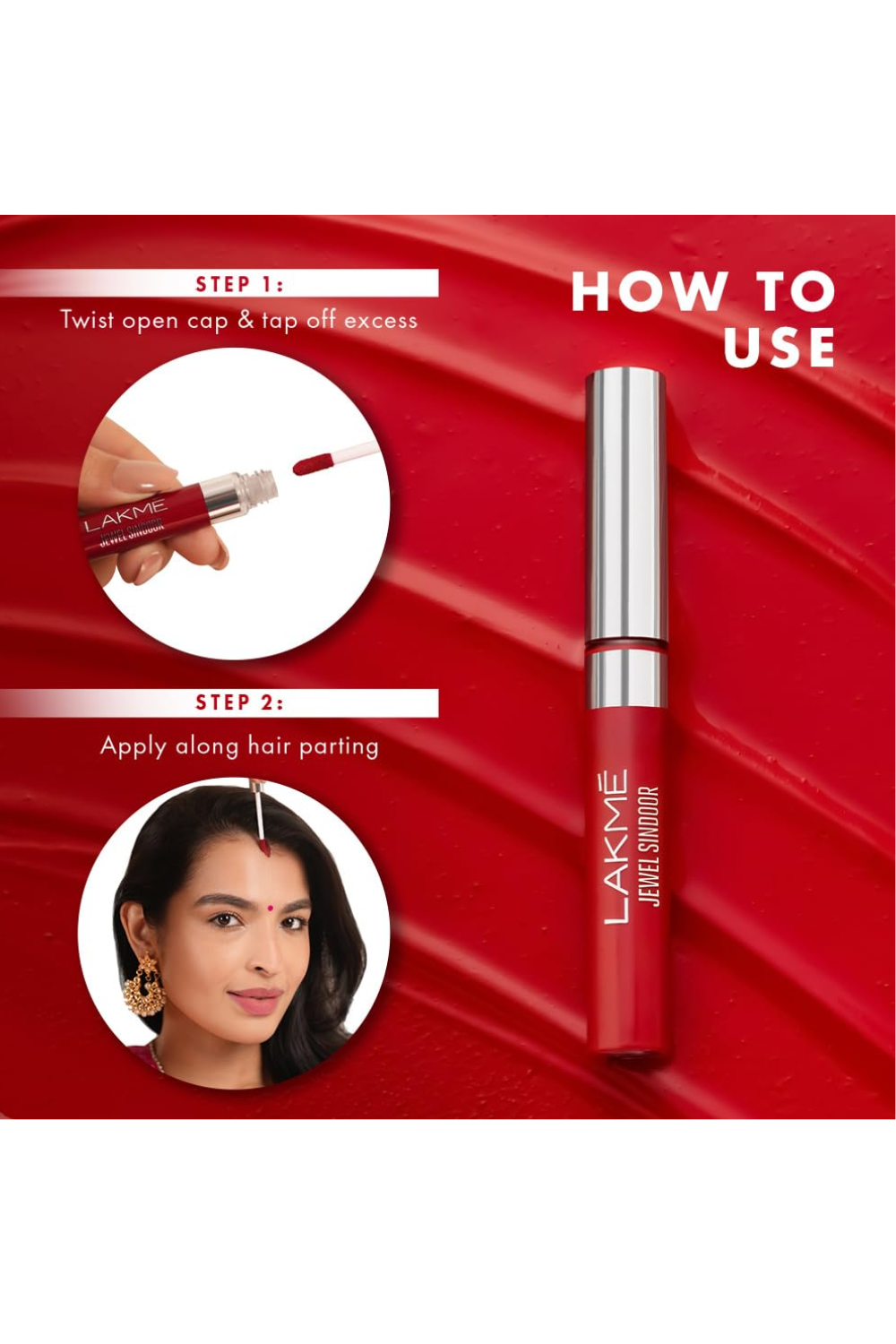 Lakme Jewel Sindoor. A liquid based sindoor that allows precise application and comes in two classic shades – red and maroon. Giving that finesse with a sponge tip applicator, this symbolic tradition is now a non-messy affair. Complete your traditional Indian look with the maroon stroke of the Lakmé Jewel Sindoor. This liquid based sindoor by Lakmé has a long-lasting, smudge-proof formula to give you good wear-ability and to make it long lasting. A ubiquitous part of the married Indian woman’s look, the sindoor not only plays a symbolic role, but it also enhances the beauty of the woman wearing it.