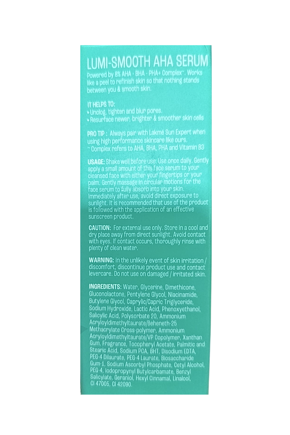 Lakme Lumi -Smooth AHA Serum 8% AHA - BHA - PHA+ Complex, 30ml