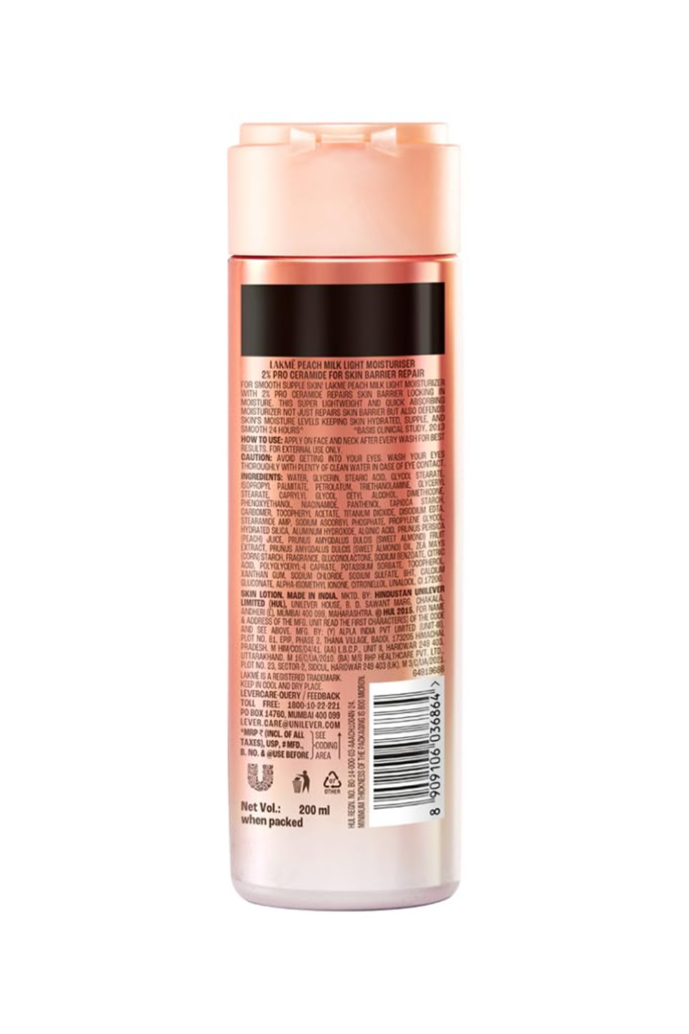 Lakme Peach Milk Light Mioisturiser 2% Pro Ceramide For Skin Barrier Repair, 200 ml