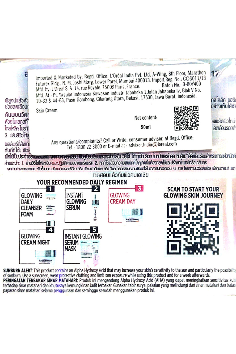 Customer Care E-Mail: advisor.India@loreal.com