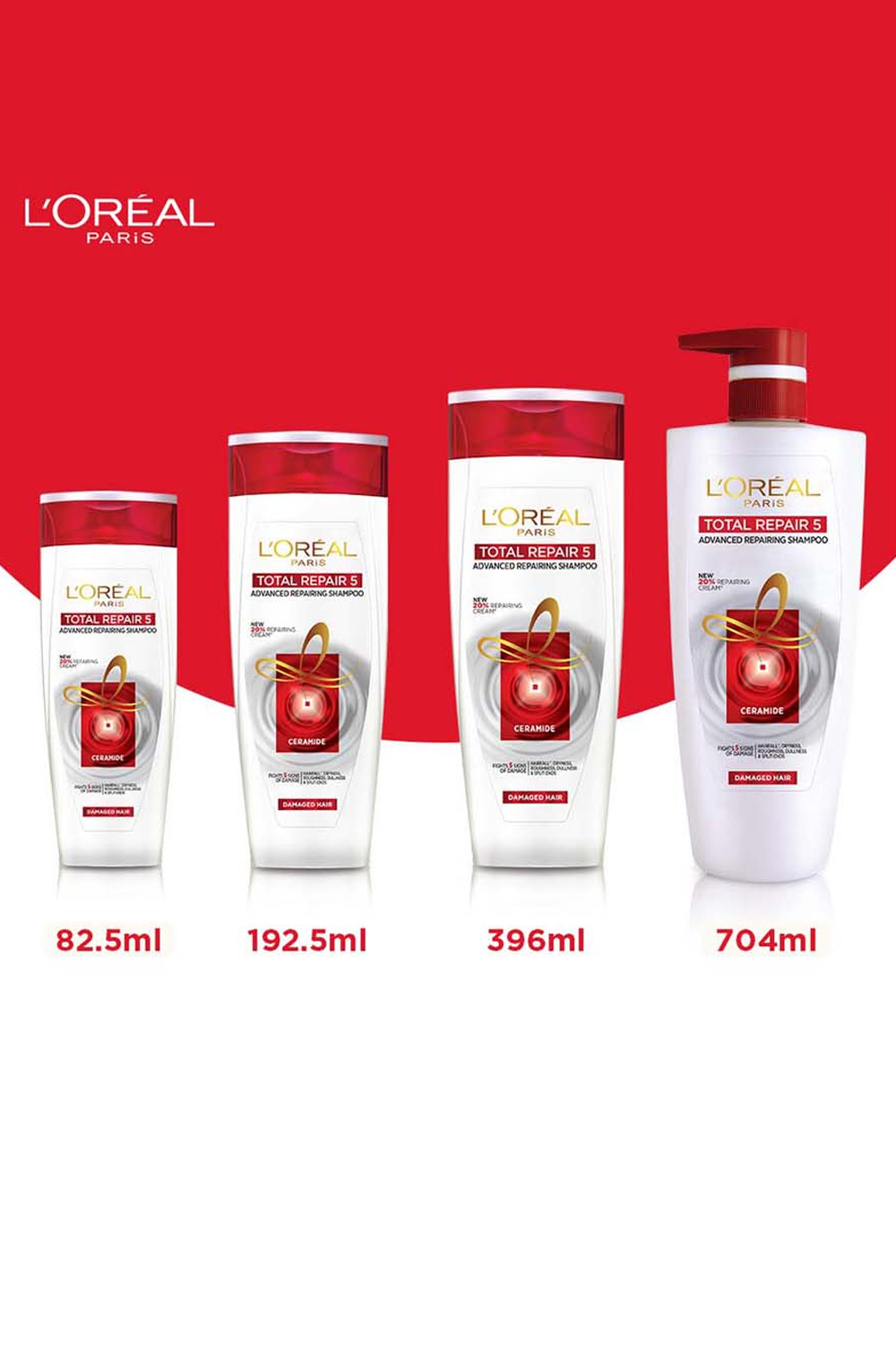 L'Oréal Paris Total Repair 5 Repairing Shampoo helps combat the five signs of damaged hair - Hair fall, Dryness, Roughness, Dullness, and Split ends without weighing it down. Damaged hair lacks the natural cement that keeps the hair strong and resilient. To make sure the hair gets the required strength, the L'Oréal Laboratories have included the Keratin XS technology to replicate the hair's natural cement to target the five major problems. The smallest form of Keratin XS deeply penetrates the fibres to ensure faster repair.