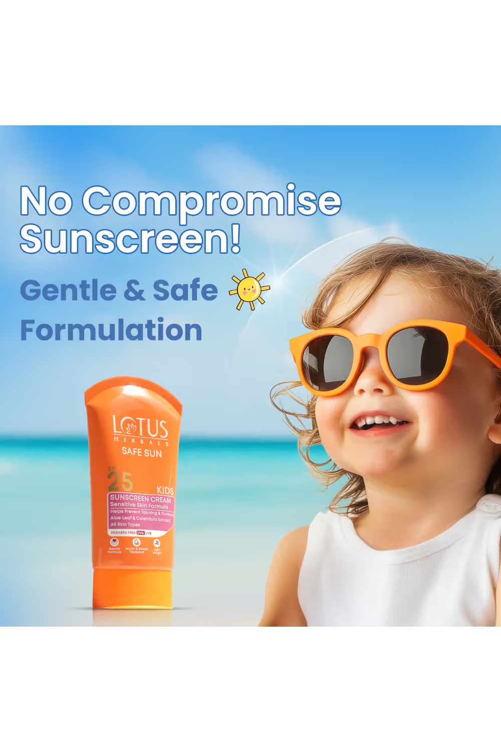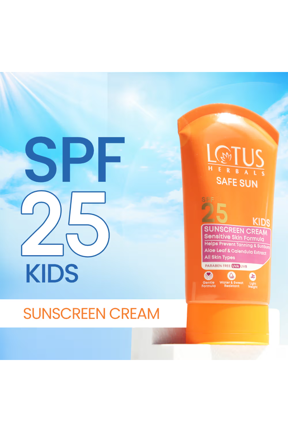 - Lotus Herbals Safe Sun Kids Sunscreen Cream SPF 25, Sensitive Skin Formula