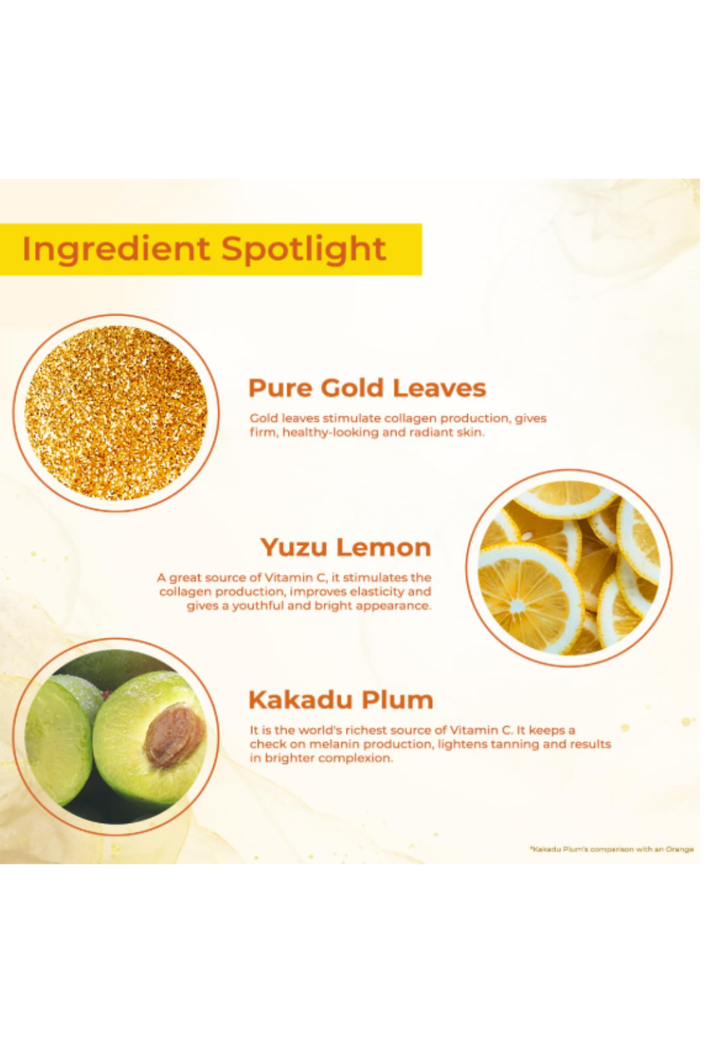 - Enriched with the dual power of vitamin C, yuzu lemon extract, pure gold leaves and kakadu plum