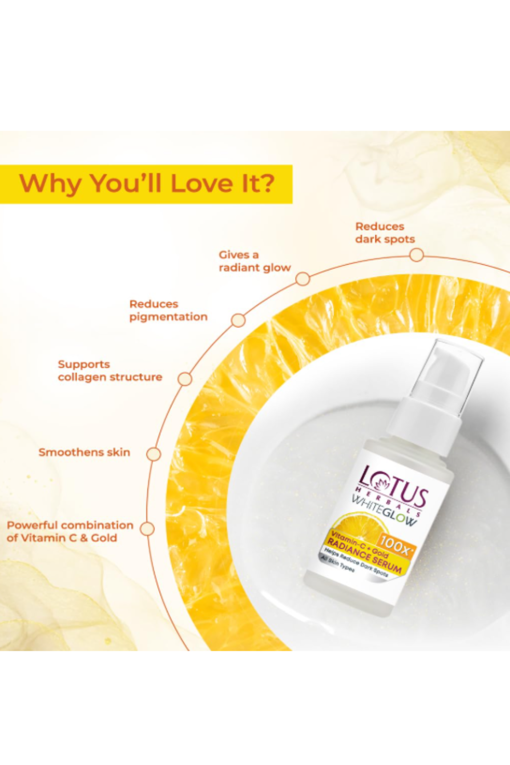 Lotus Herbals Whiteglow Vitamin C + Gold RADIANCE SERUM, 30ml (White Glow Vitamin C Gold Radiance Face Wash, 50gm FREE)