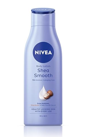 Indulge in deep moisture care with the new NIVEA Shea Smooth Body Lotion. Enriched with shea butter and deep moisture serum, it deeply moisturizes dry skin and gives it a silky smooth feeling that lasts for up to 48 hours.