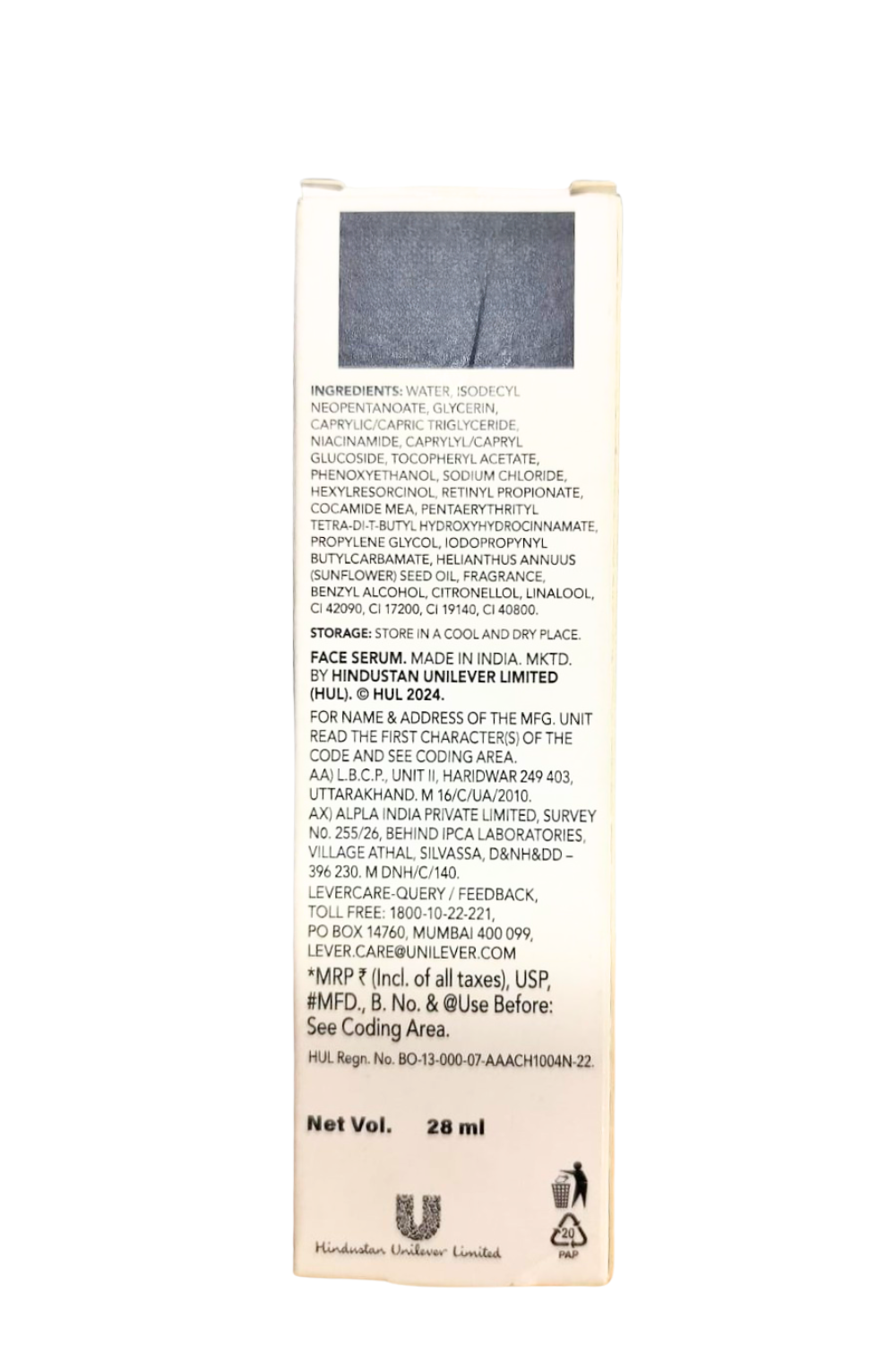 Imported and Marketed By: Face Serum Made in India Marketed by Hindustan Unliver Limited (HUL)
