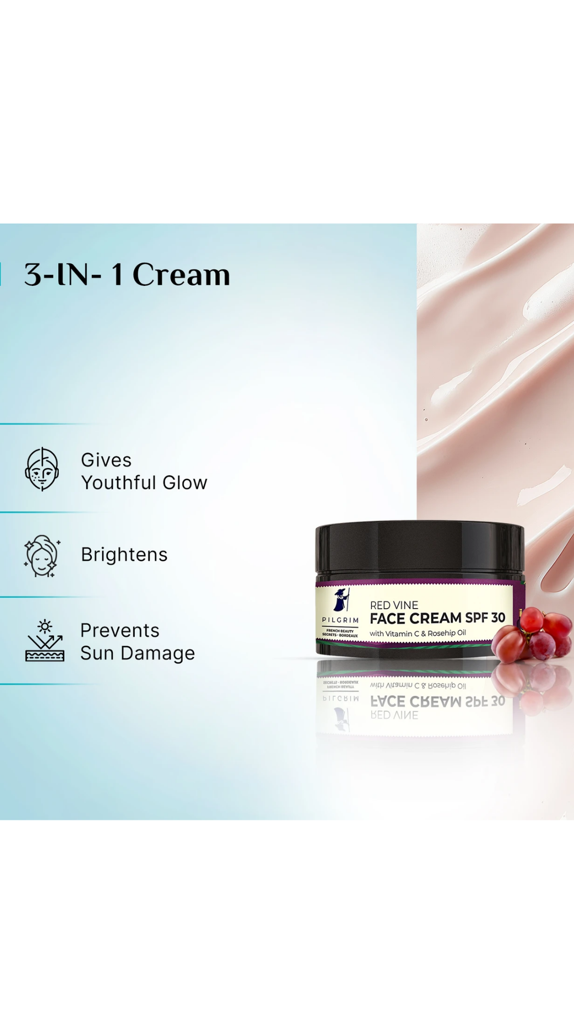 - Pilgrim Red Vine Face Cream SPF 30 With Vitamin C & Rosehip Oil PA+++, 50gm
