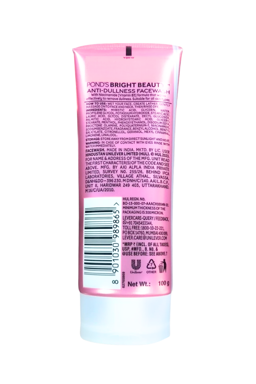 Hydration: Packed with the goodness of Niacinamide and other skin-beneficial ingredients, POND'S Bright Beauty Anti-Dullness Face Wash makes your skin appear clear, fresh, and hydrated.