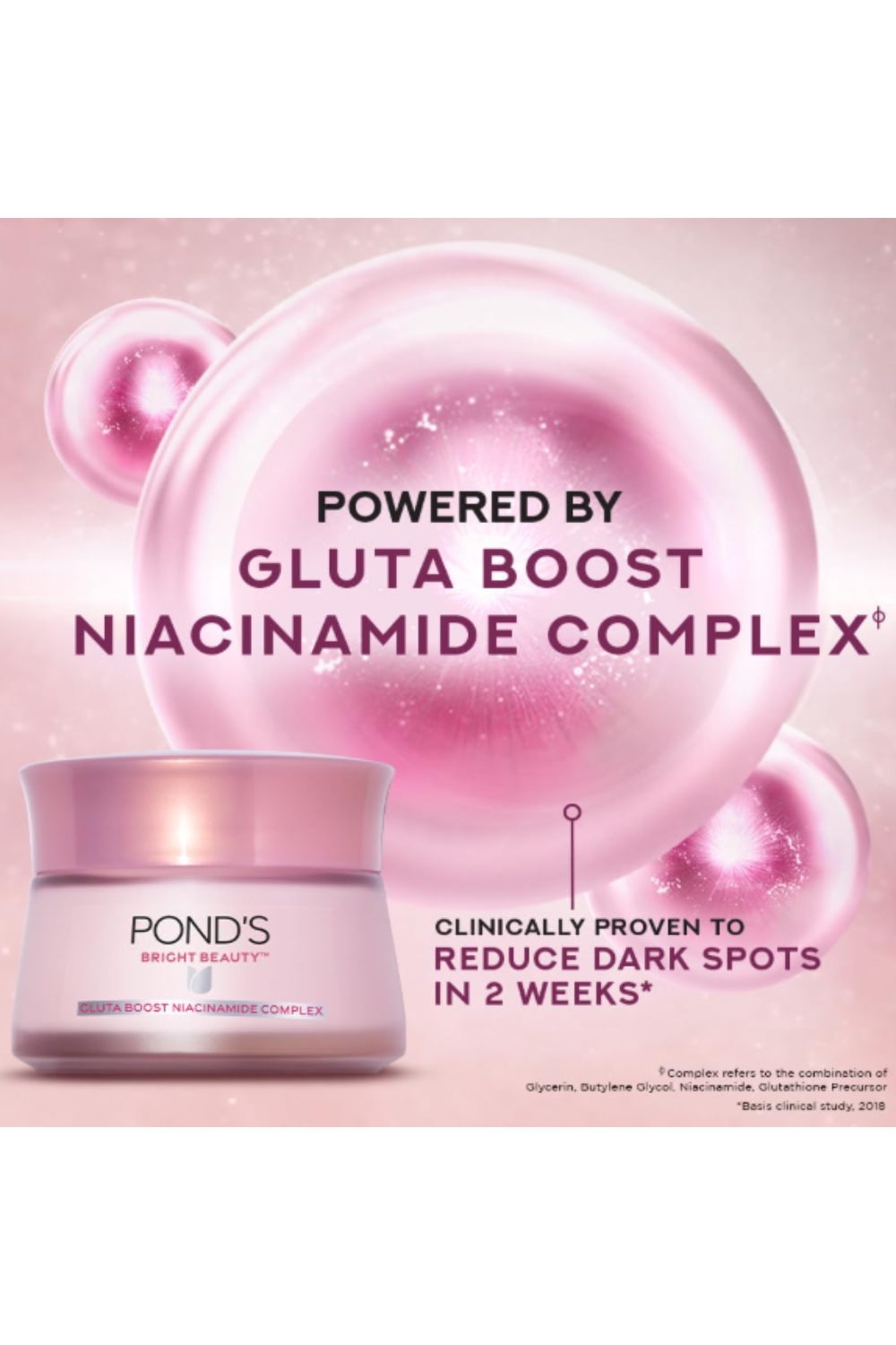 Glutathione Precursor: Found naturally in the human body, the Glutathione Precursor is a powerful antioxidant that primarily helps brighten your skin tone and fade dark spots. The unique combination of Niacinamide and Glutathione Precursor in the new POND'S Bright Beauty Gel Creme is a standout addition to your daily skincare regime.
