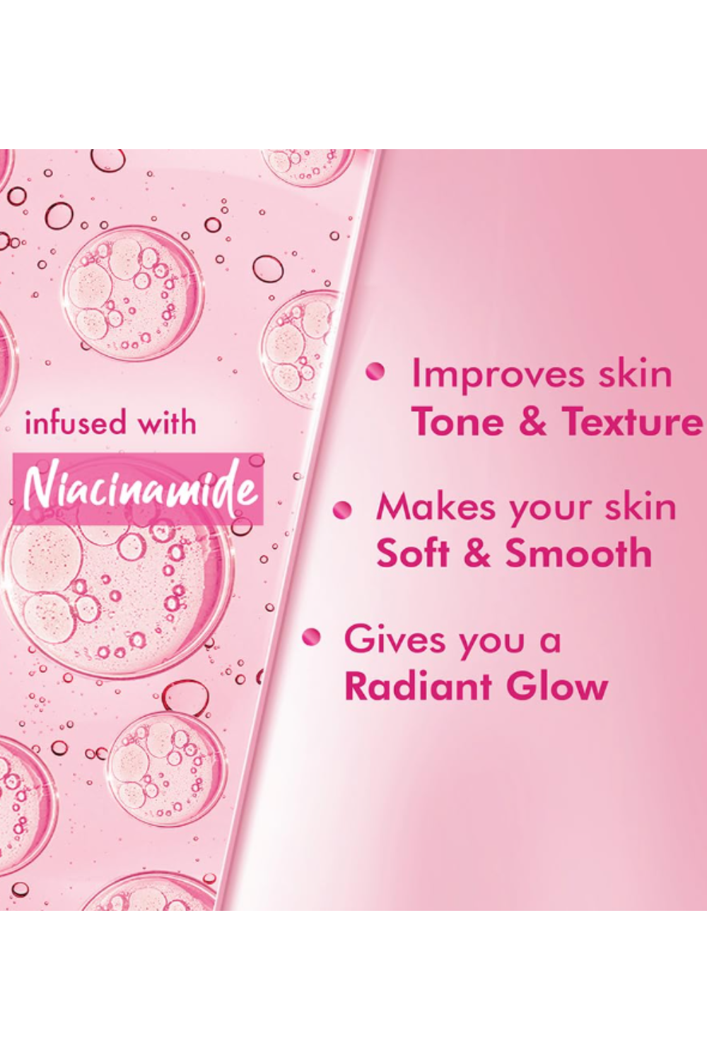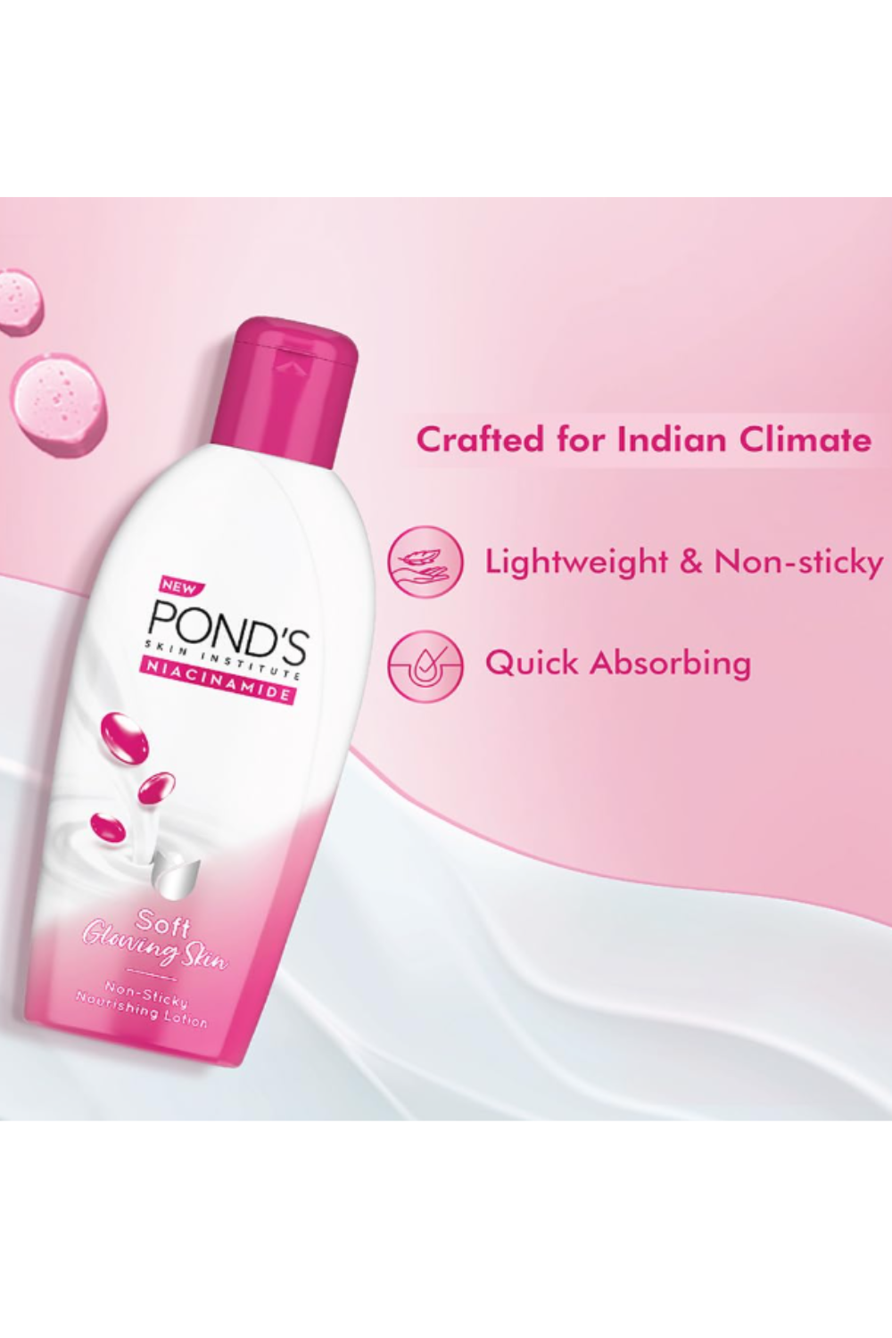 Triple Vitamins: A triple vitamin dose is always better than one! Created with a triple vitamin formulation, POND'S Niacinamide Body Lotion is a perfect body lotion for dry-skin individuals. Due to its quick-absorbing and non-sticky texture, the body lotion gets easily absorbed into the skin and can be used throughout the year, for all seasons.