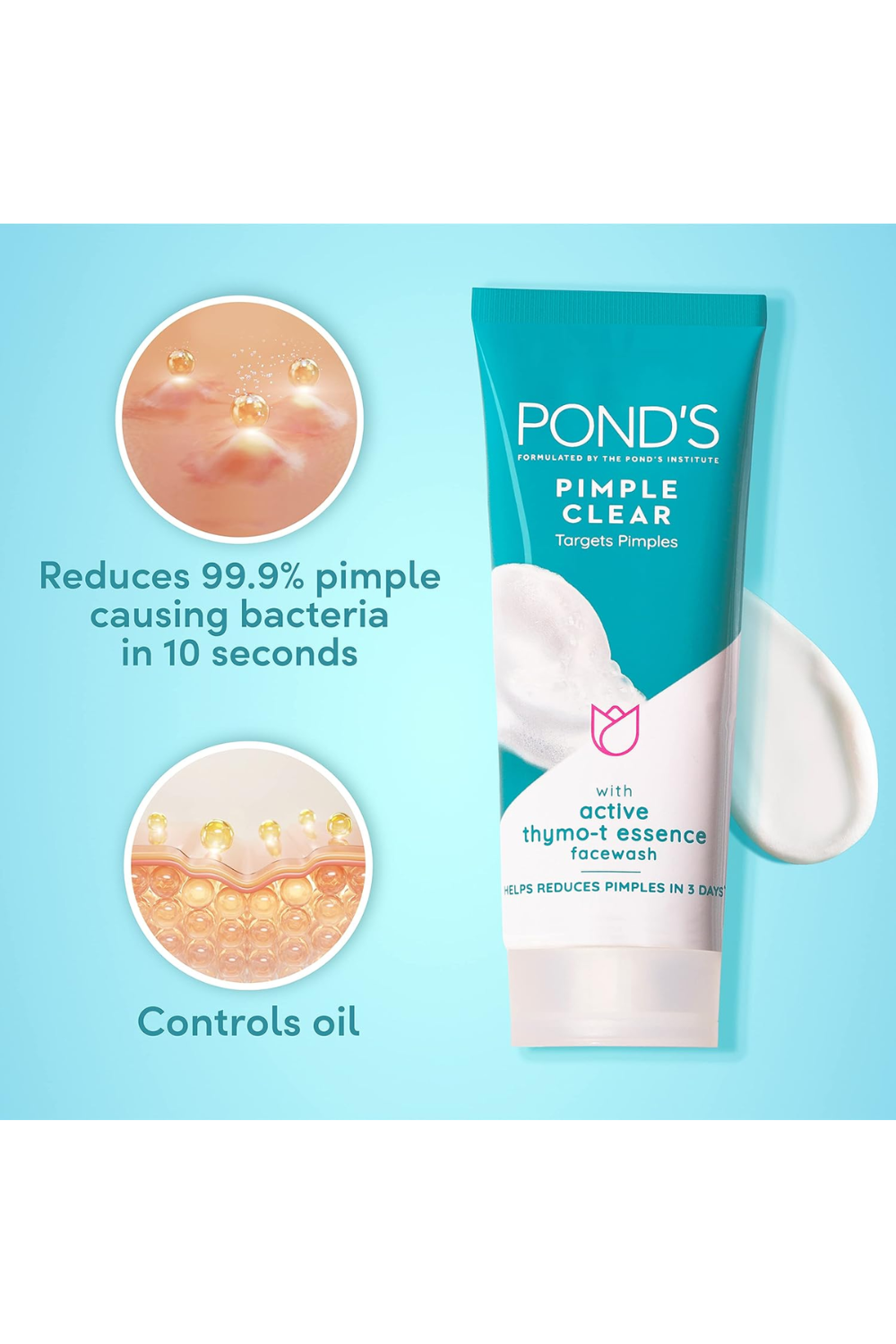 Deep cleans pores:This POND'S pimple clear face wash is made with Lock + Clear technology that helps reduce 99.9% pimple-causing bacteria and deep cleans pores.