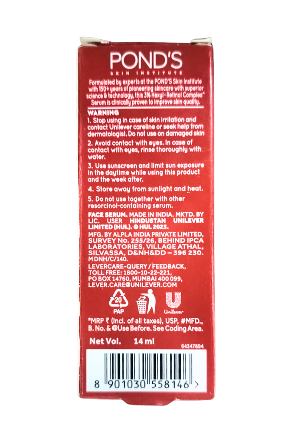 Imported and Marketed By: LIC.USER Hindustan unilrver limited(HUL). 2023