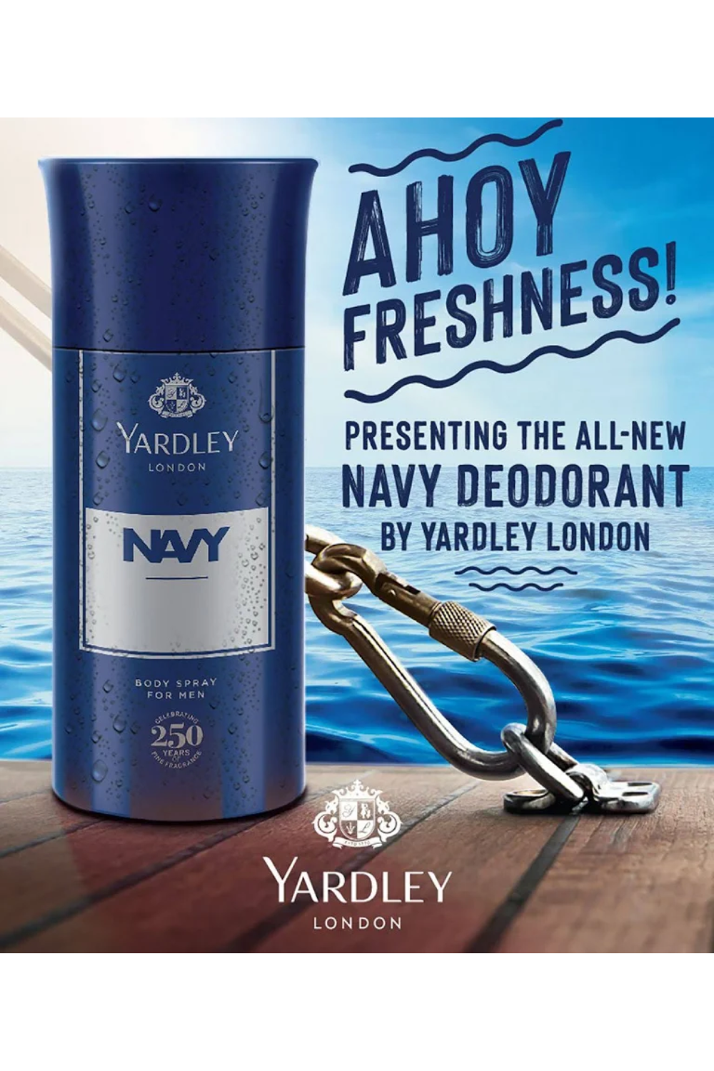 Description: Introducing Yardley Navy Deodorant for men- it is a modern fragrance with fresh aquatic notes enhanced by grapefruits. Musky woods create a masculine scent that is both fresh and sensual