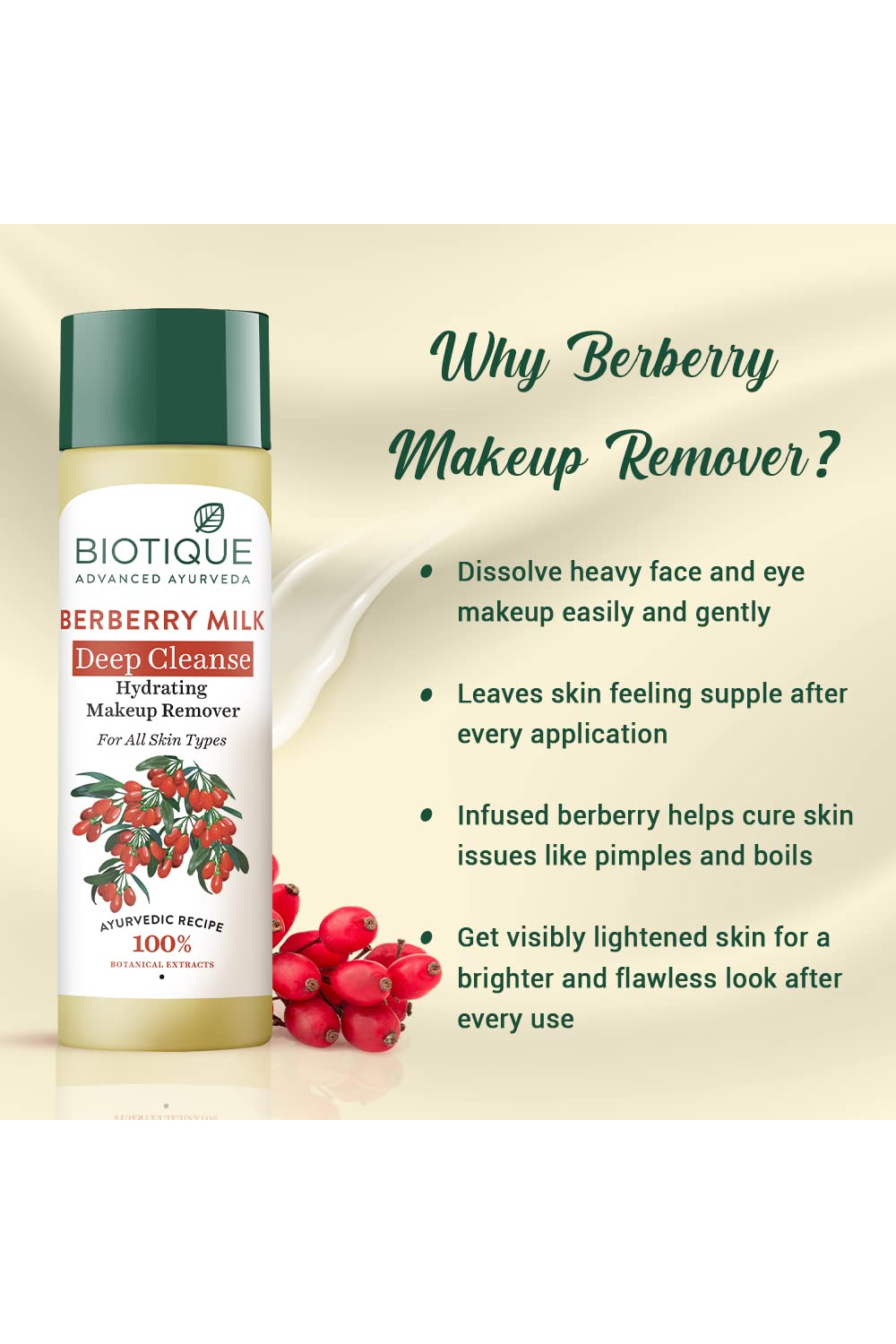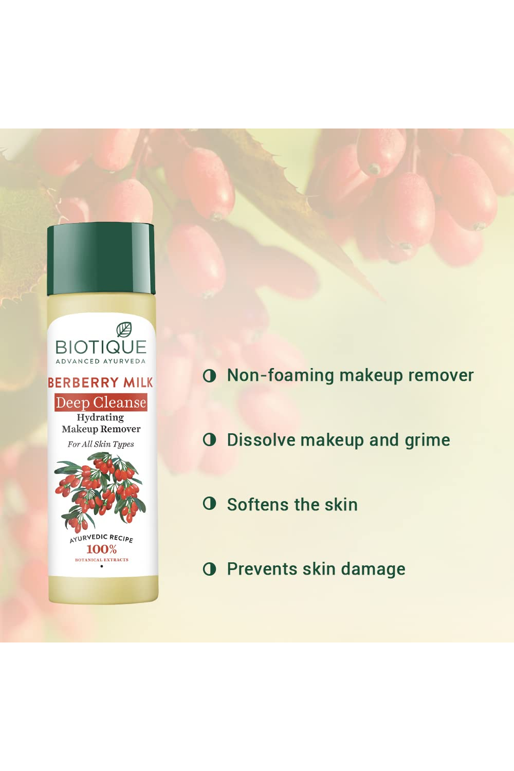 Biotique Advanced Ayurveda Berberry Milk Deep Cleanse Hydrating Makeup Remover, 120 ml