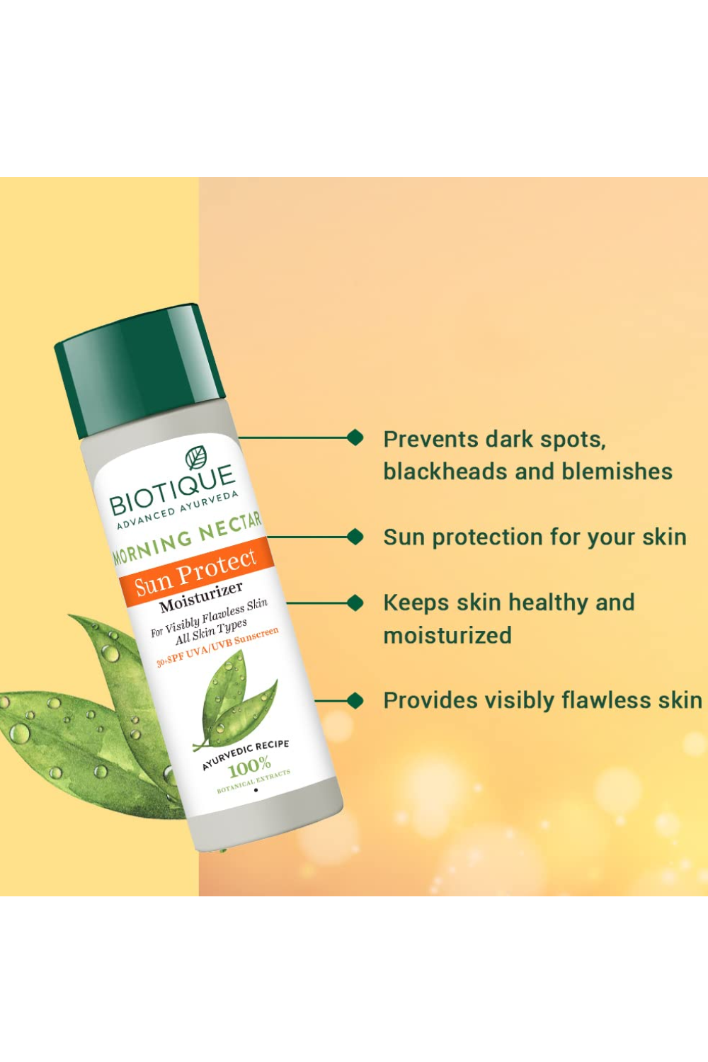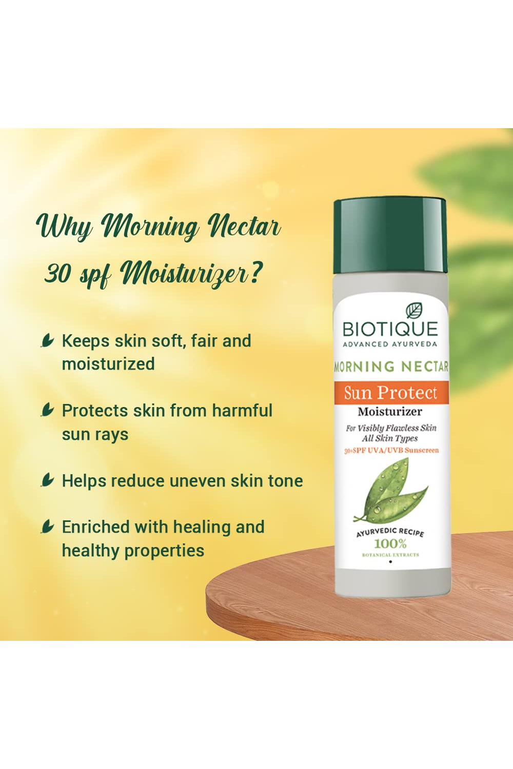 Biotique Advanced Ayurveda Morning Nectar Sun Protect Moisturizer 30+SPF UVA/UVB, 120ml