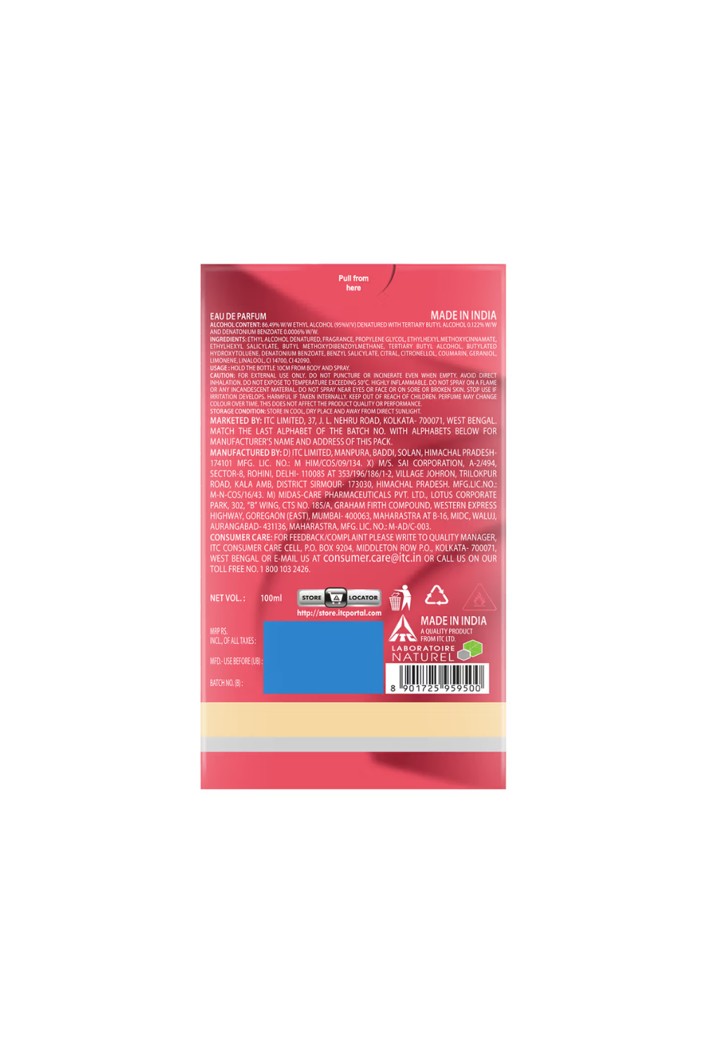 Manufactured By: ITC Limited, Manpura Baddi, Solan, Himachal Pradesh- 174 101.