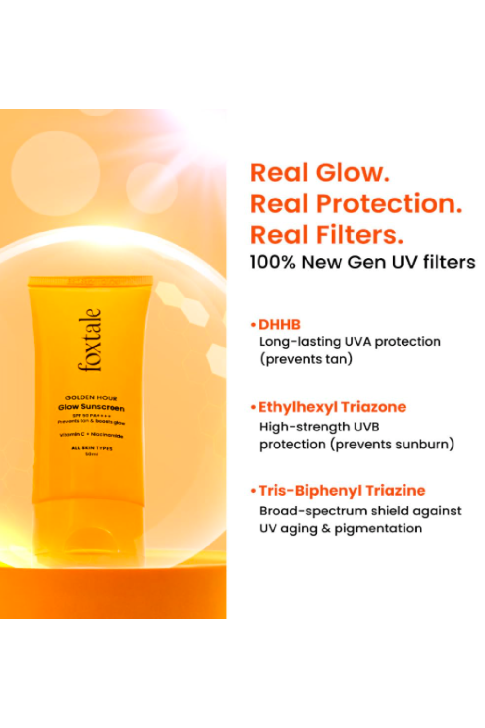 Foxtale Golden Hour Glow Sunscreen SPF 50 PA+++, 50ml