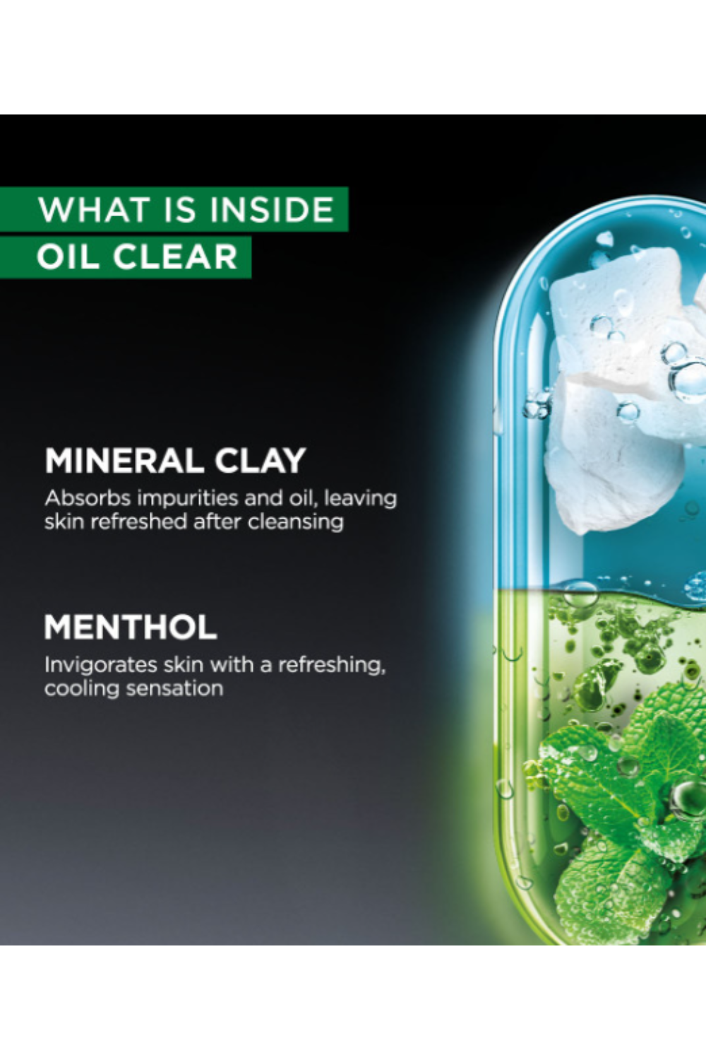 - INFUSED WITH MINERAL CLAY AND MENTHOL: The Garnier Men Oil Clear Clay D-Tox Facewash is enriched with the goodness of mineral clay and menthol, which leave you with clear skin.