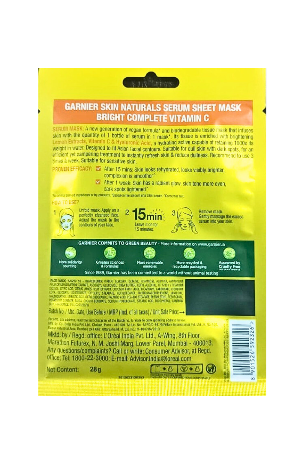 - Step 1: Open the packaging of the Garnier Bright Complete Serum Sheet Mask and wear it for 15 minutes.