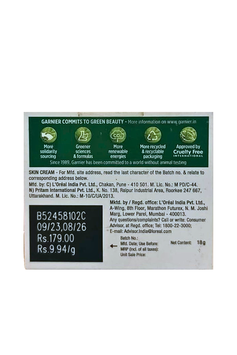 Manufactured By: C) L'Oreal India Pvt. Ltd., Chakan, Pune- 410501, N) Pritam International Pvt. Ltd., K. No. 138, Raipur Industrial Area, Roorkee 247 667, Uttarakhand.