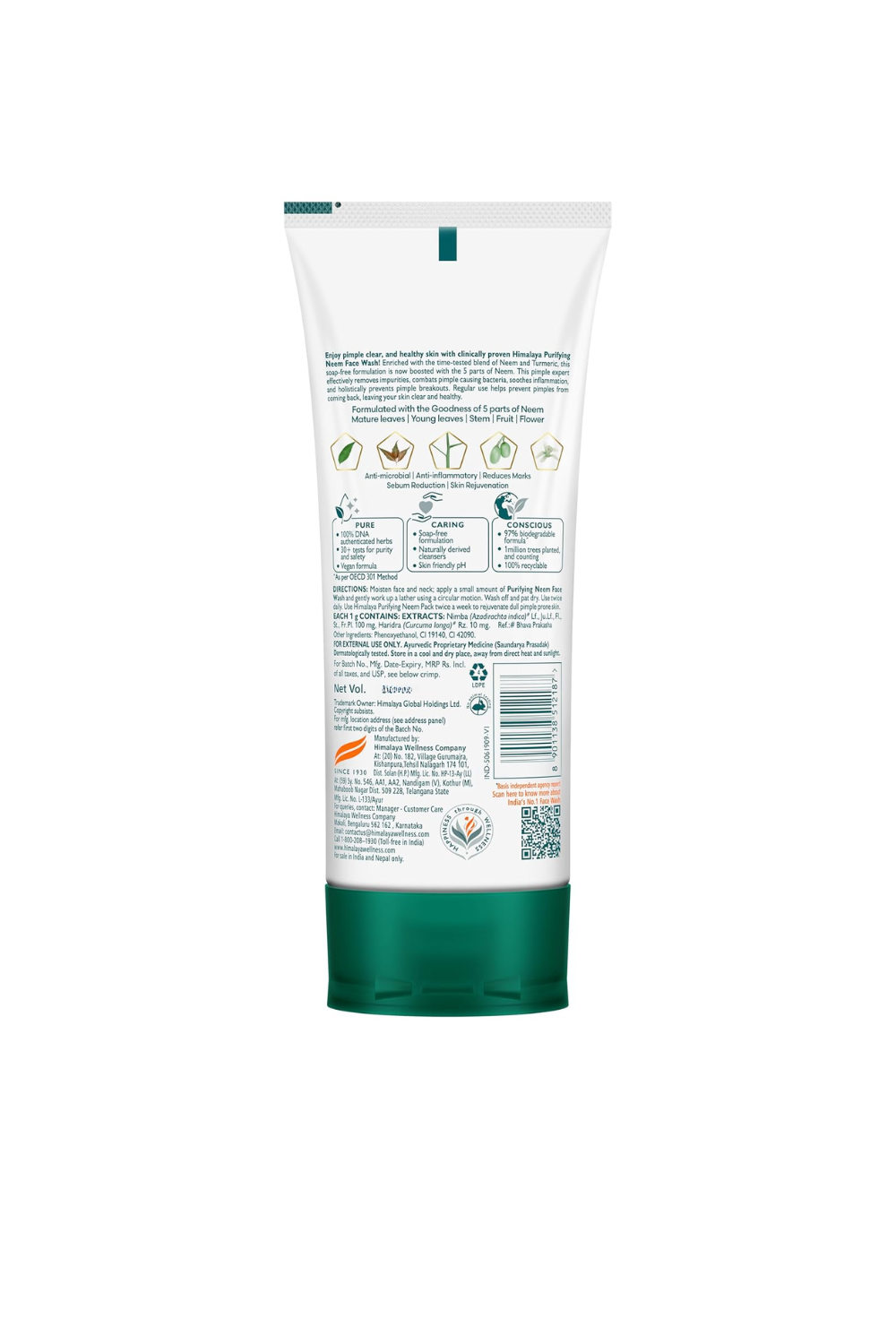 Manufactured By: Himalaya Wellness Company At: (20) No. 182, Village Gurumajra, Kishanpuran, Tehsil Nalagarh 174 101 Dist. Solan (H.P)