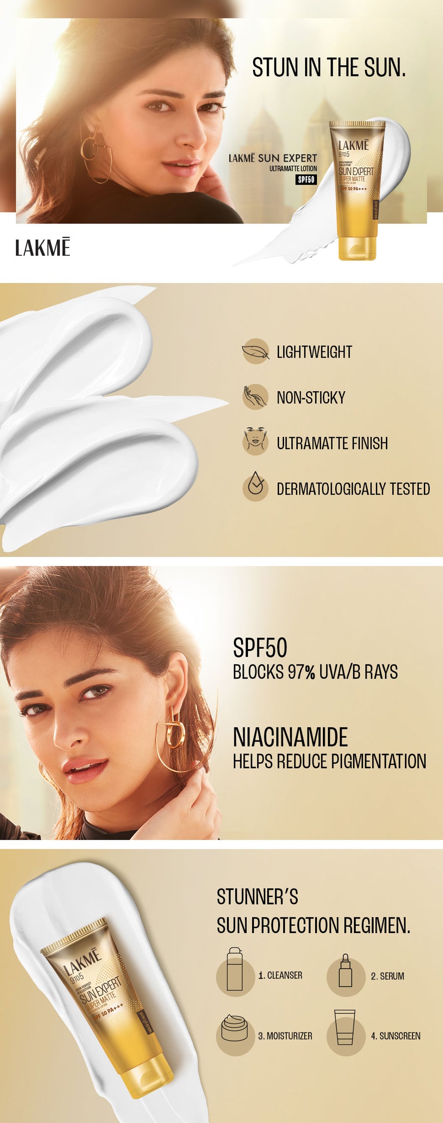- LAKME 9 To 5 Sun Expert Super Matte Sunscreen Lotion SPF 50 PA+++, 100gm