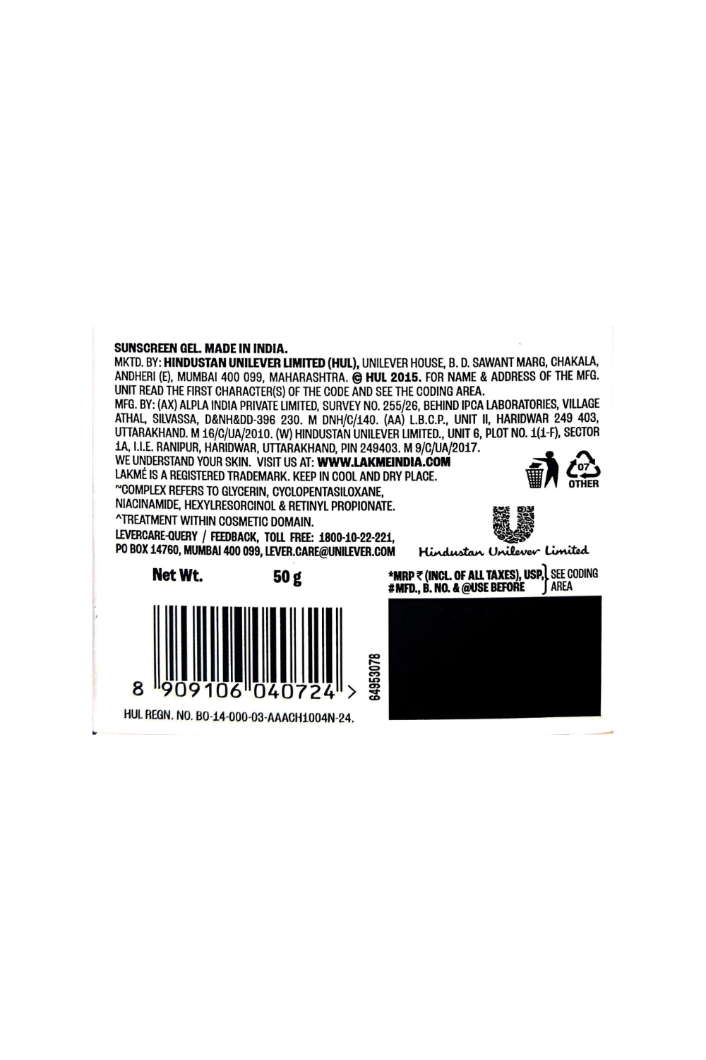 Marketed By: HINDUSTAN DO NOT LITTER UNILEVER LIMITED, UNILEVER HOUSE, B. D. SAWANT MARG, CHAKALA, ANDHERI (E), MUMBAI 400 099, MAHARASHTRA. HUL 2015.