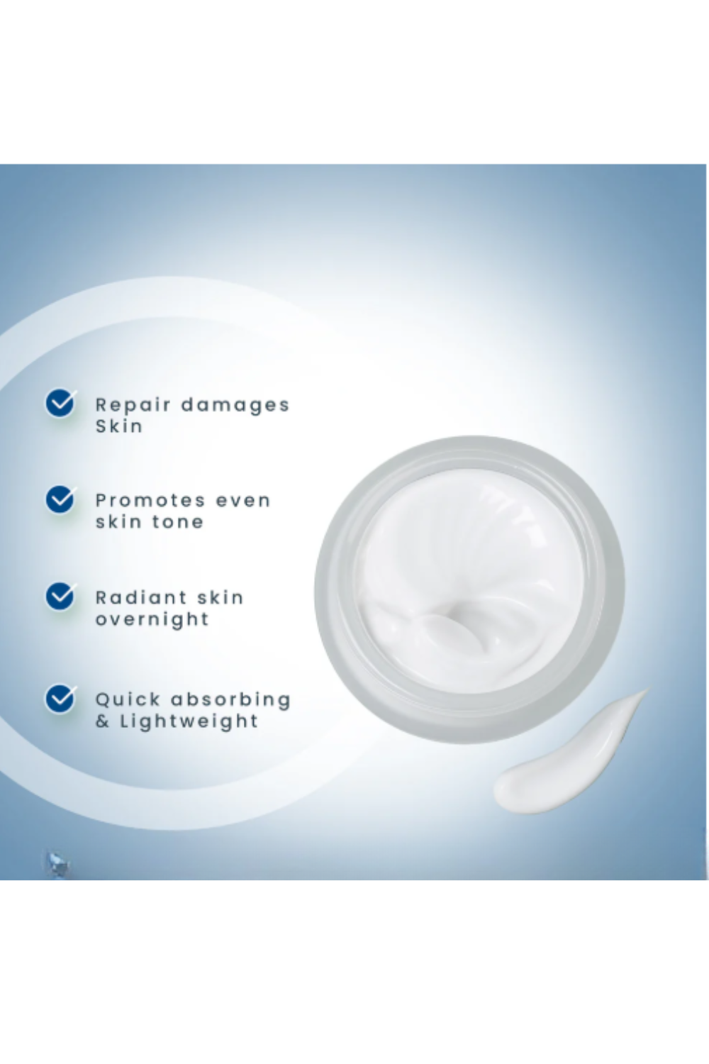 Repairs & Renews OvernightNatural100% VeganCruelty FreePreservative FreeDermatologically TestedQuick AbsorbingLight WeightRepairs & Renews Overnight