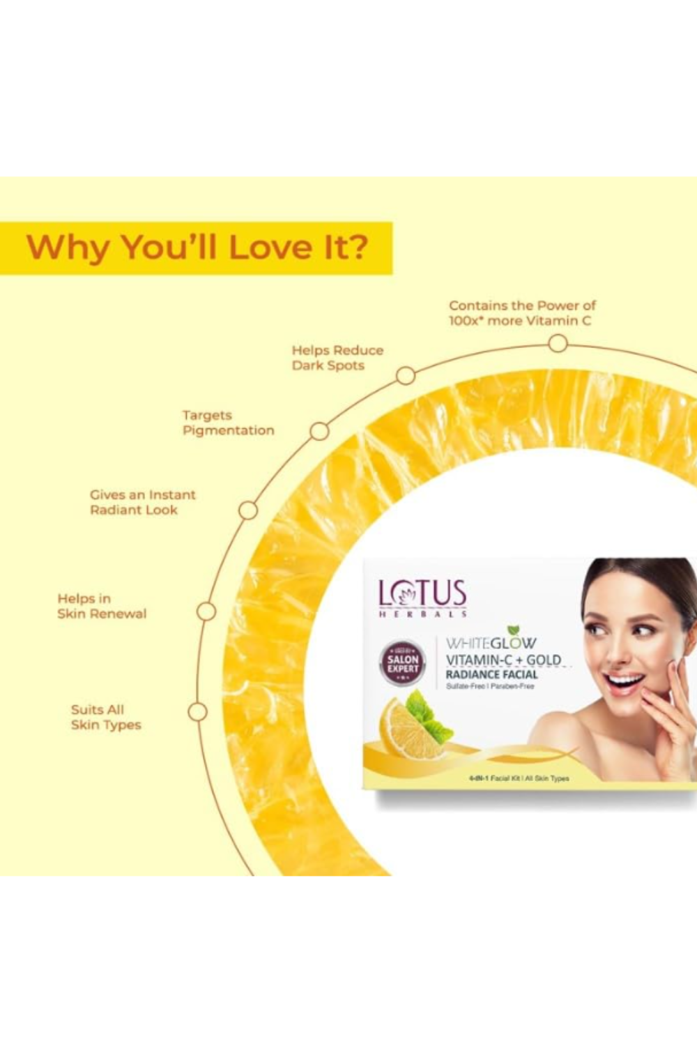 Lotus Herbals Whiteglow Vitamin C + Gold Radiance Facial Kit, Single, 57gm