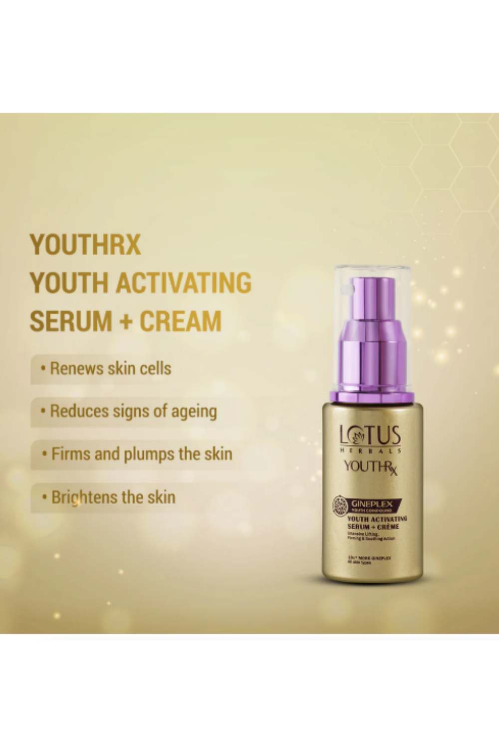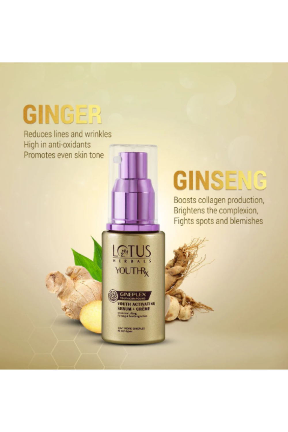 The Lotus Herbals YouthRx Youth Activating Serum+Creme is a testament to a revolutionary development in ‘Green Science’. It comes with the ‘Gineplex Youth Compound’ derived from potent natural ingredients and is clinically proven to accelerate the process of skin lifting, firming and protective skin action.