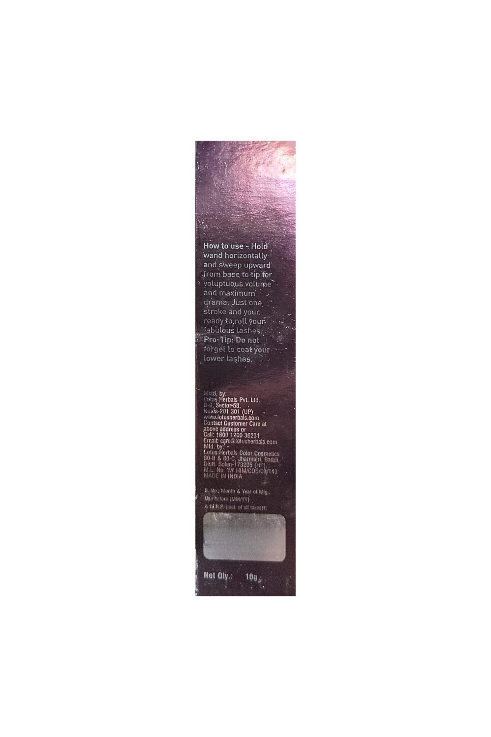 Manufactured By: (B) Lotus Herbals Color Cosmetics 80-B & 80-C, Jharmajri, Baddi, Distt. Solan-174103(HP)