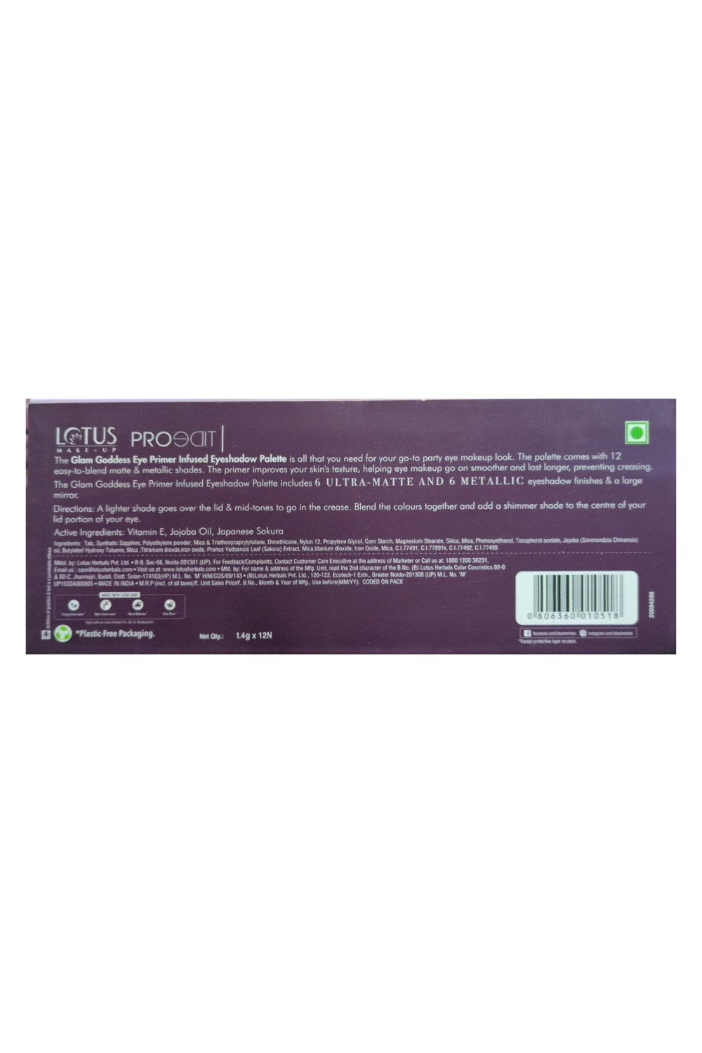 Manufactured By: (B) Lotus Herbals Color Cosmetics 80-B & 80-C, Jharmajri, Baddi, Distt. Solan-174103(HP)