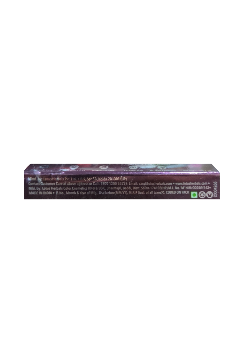 Manufactured By: (B) Lotus Herbals Color Cosmetics 80-B & 80-C, Jharmajri, Baddi, Distt. Solan-174103(HP)