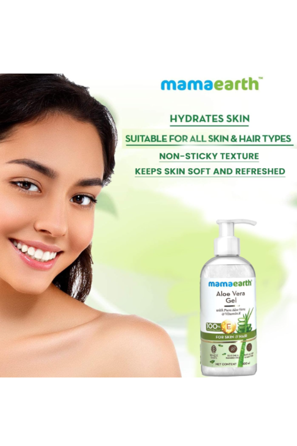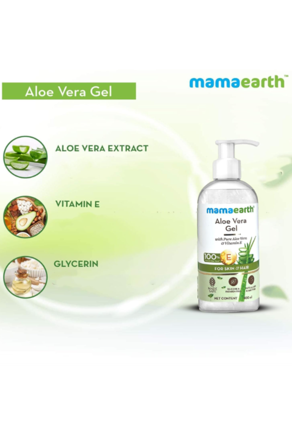 Over the years, Aloe Vera has been a household name when it comes to soothing inflammation and hair woes. Aloe Vera has stood the test of time and is still used in various skin and hair care products.We at Mamaearth have taken the cue and bring to you Aloe Vera Gel that works like magic for both your skin and hair. This pure Aloe Vera Gel penetrates your skin and scalp to nourish & moisturize from deep within. The antibacterial properties present in Aloe Vera Vitamin E prevent itchy scalp and irritated skin. Regular application will promote even skin tone, fight breakouts, and prevent wrinkles on your skin.Regular aloe vera gel uses for hair will keep them shiny, strong, moisturized, and make the scalp healthy and happy. Suitable for all skin and hair types, this Aloe Vera Gel has no harmful chemicals and is free of Toxins, Parabens, and Mineral Oil