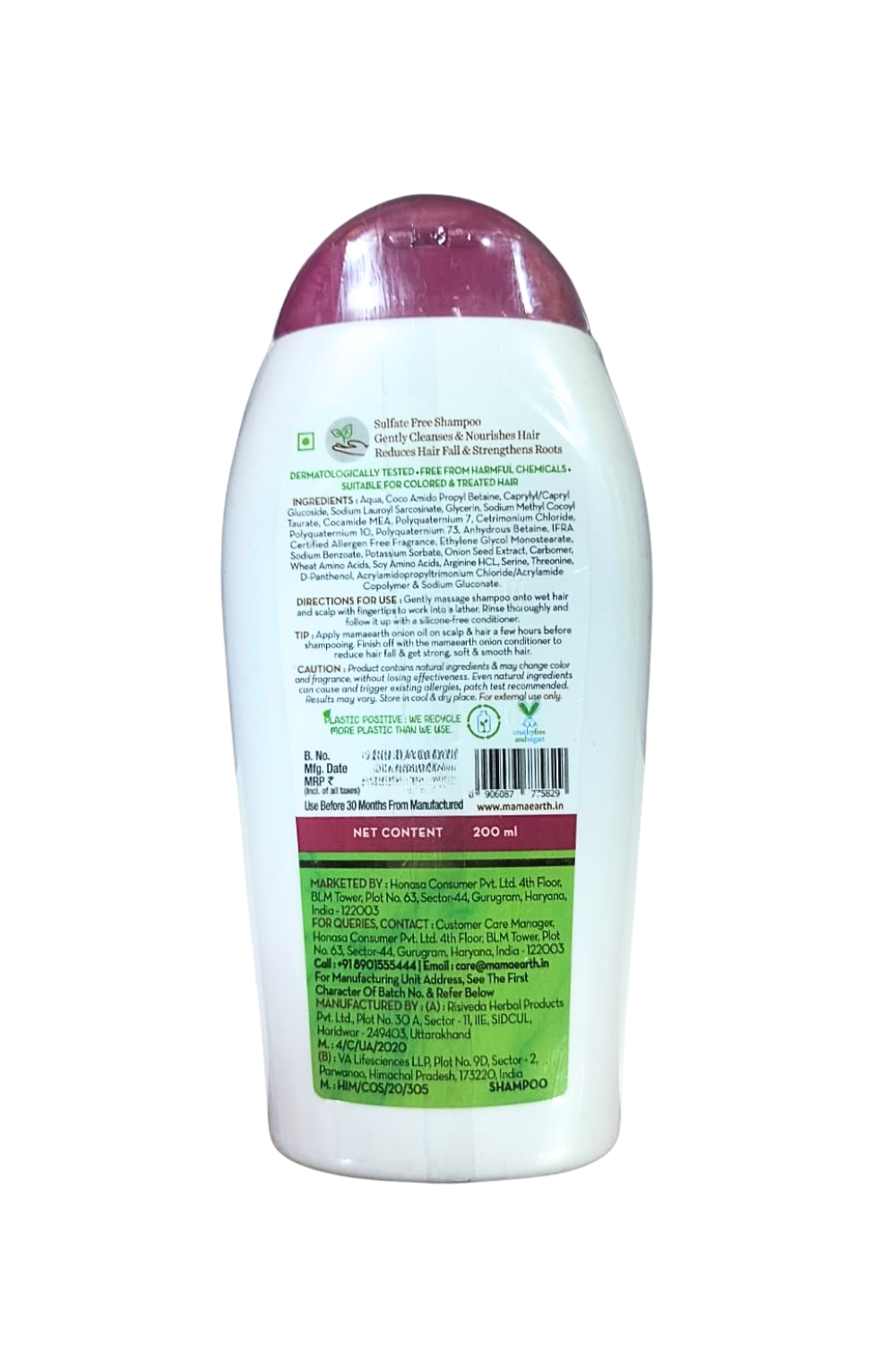 Mamaearth Onion Shampoo for Hair Fall Control and Hair Growth with Onion & Plant Keratin, 200ml