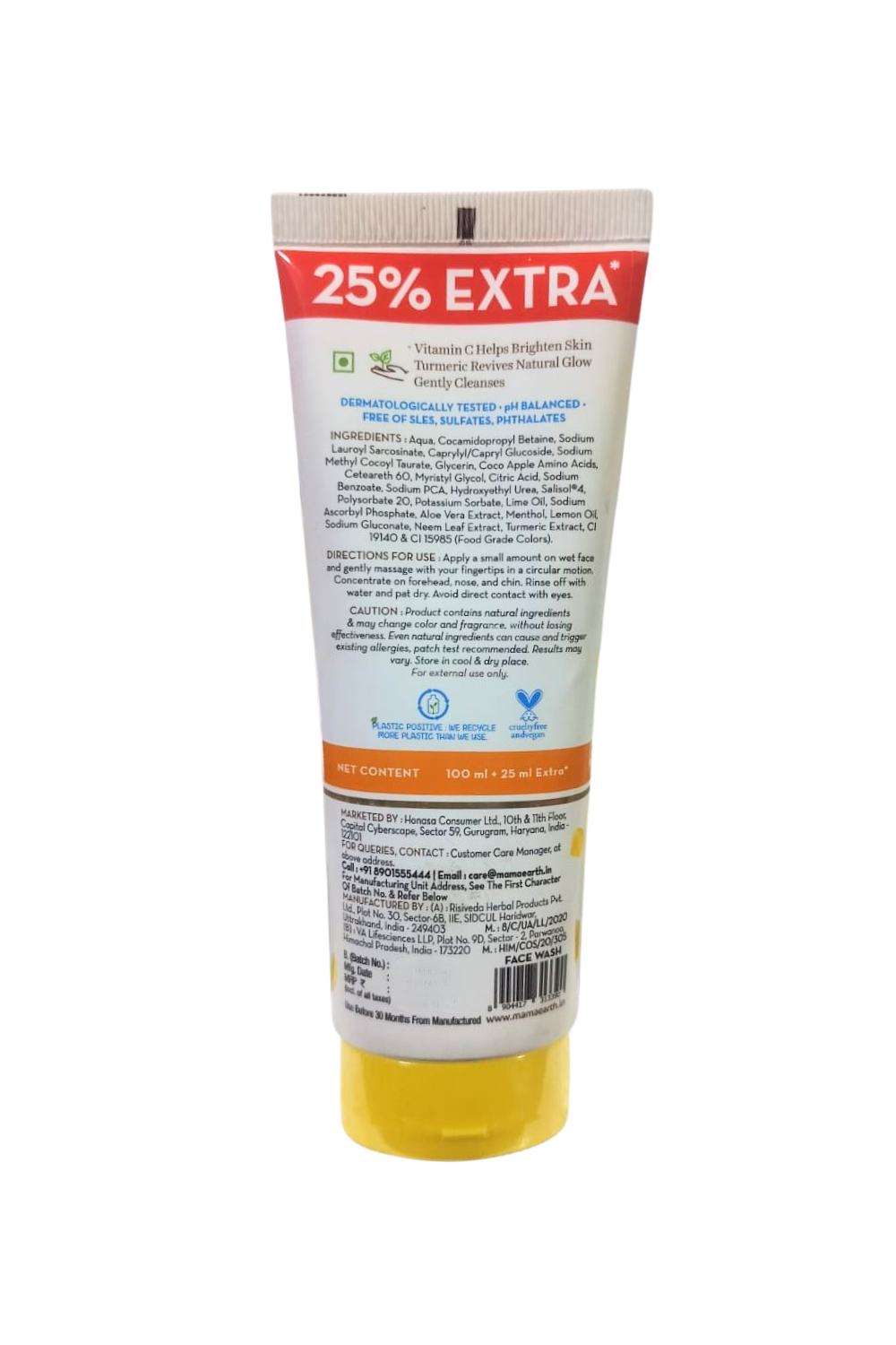 Mamaearth Vitamin C Face Wash with Vitamin C and Turmeric for Skin Illumination - 125ml, 25% Extra (100ml+ 125ml)