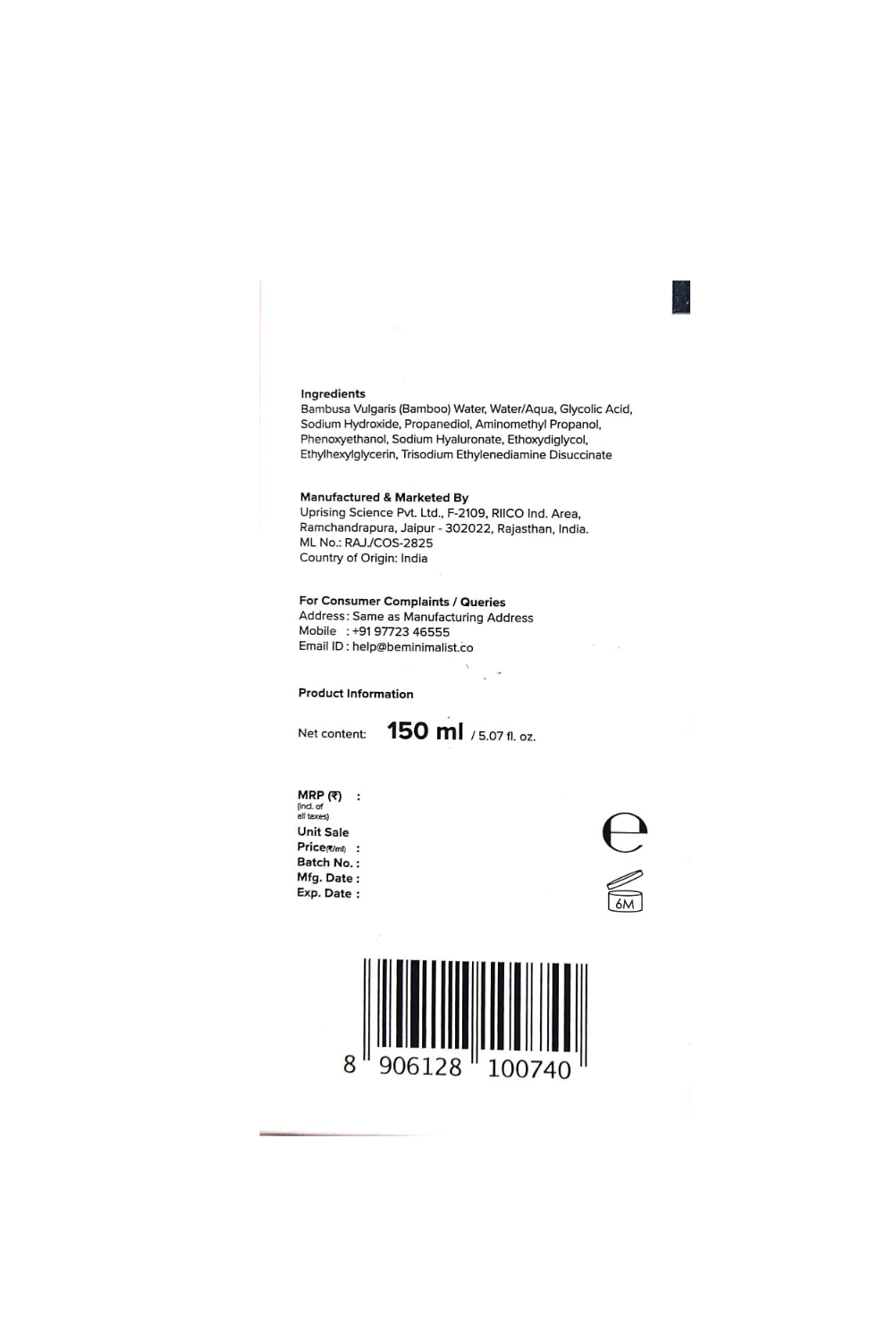 Manufactured By: Uprising Science Pvt. Ltd., F-2109, RICO Ind. Area, Ramchandrapura, Jaipur-302022, Rajasthan, India.